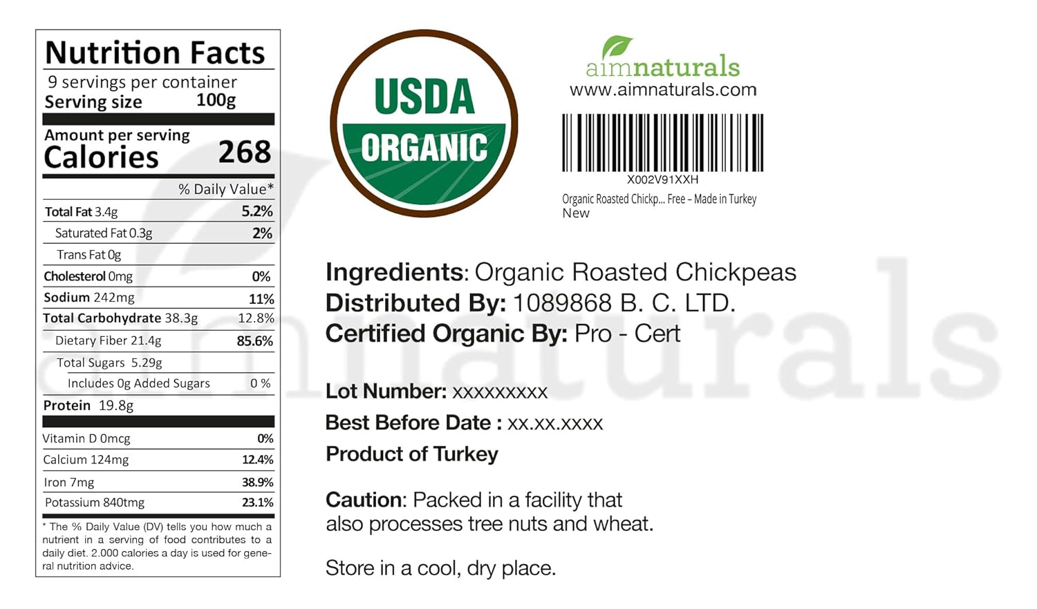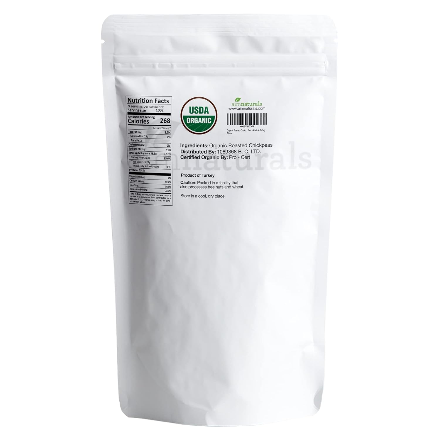 Organic Roasted Chickpeas 2 Lb- Usda Organic Certified – Healthy Snack, Lightly Roasted, No Oil, No Salt, No Gmo & Gluten Free – Product Of Turkey