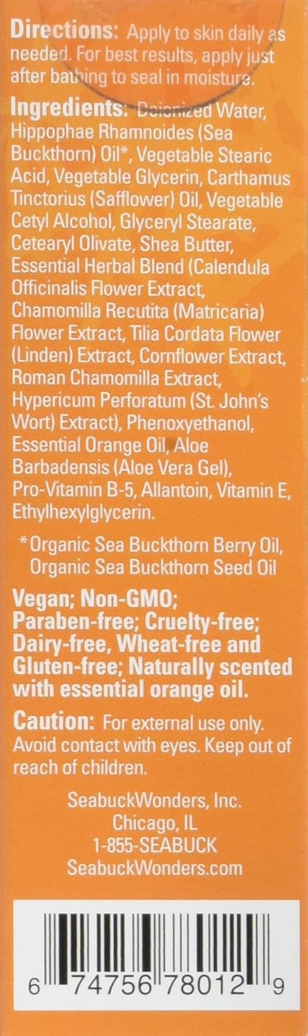 About this item Convenient- Enjoy the benefits of sea buckthorn oil for your skin daily. Get all of the benefits of sea buckthorn oil without the mess! Soothing & Balancing- The formula soothes sensitive skin while encouraging long term health. Quality Ingredients- Natural orange oil scent. Cruelty free certified. Zero sulfates, soy, coconut, dairy, wheat. Most Potent Source of Omega 7-Sea buckthorn berry oil is the for the support of natural health and beauty. See more product details,Convenient- Enjoy the benefits of sea buckthorn oil for your skin daily. Get all of the benefits of sea buckthorn oil without the mess!,Soothing & Balancing- The formula soothes sensitive skin while encouraging long term health,Quality Ingredients- Natural orange oil scent. Cruelty free certified. Zero sulfates, soy, coconut, dairy, wheat,Most Potent Source of Omega 7-Sea buckthorn berry oil is the for the support of natural health and beauty