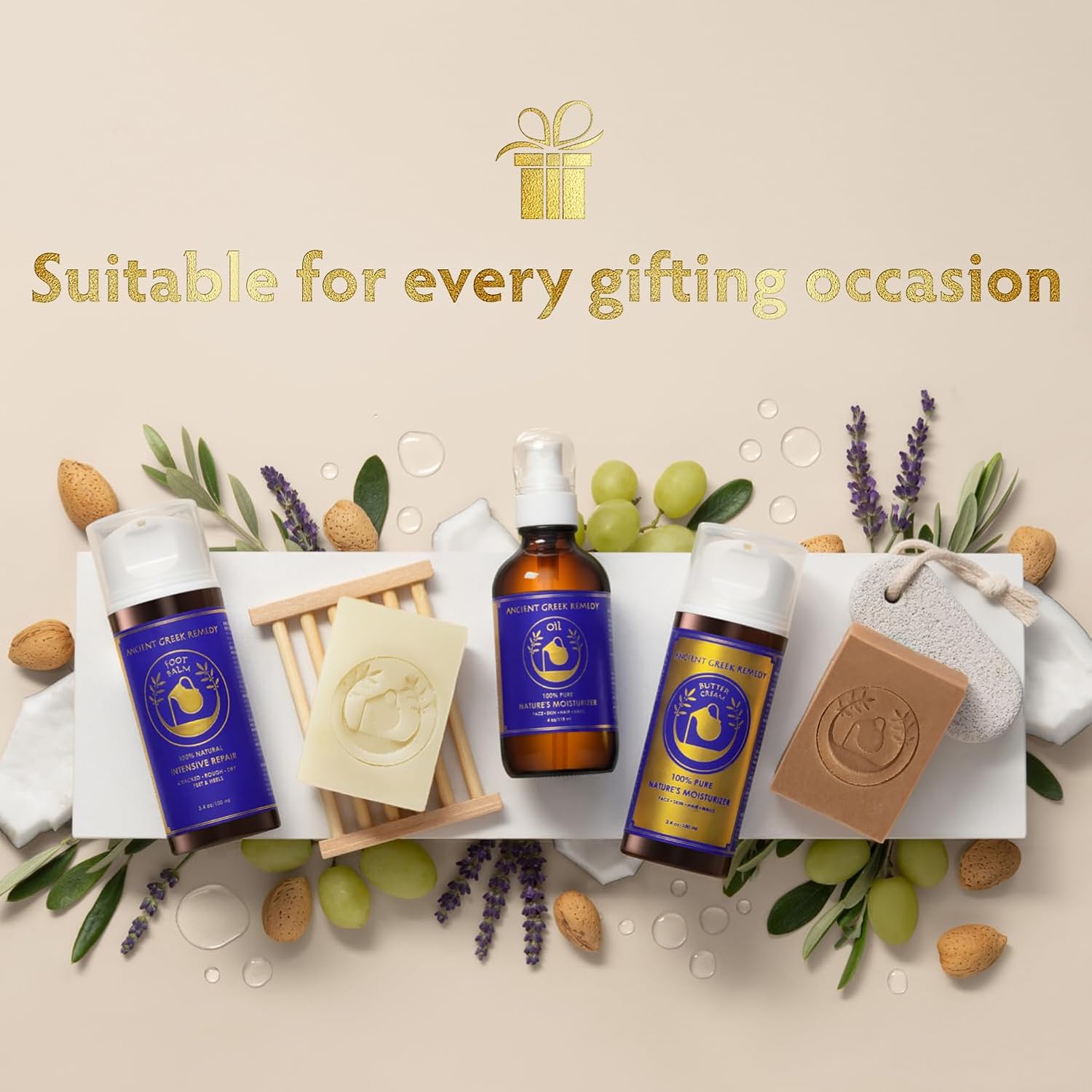 Organic Skin Care Gift Set, Spa Gifts For Women And Men - Lavender Scented Bath And Body Gift Basket With Body Oil, Facial Cream, Foot Lotion And 2 Soap Bars With Soap Holder