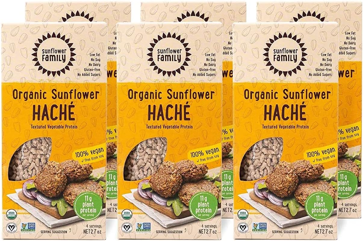 Organic Sunflower Haché - 6 Pack - 10G Protein - Plant Based Meat Substitute - Certified Organic, Sunflower Texture Protein