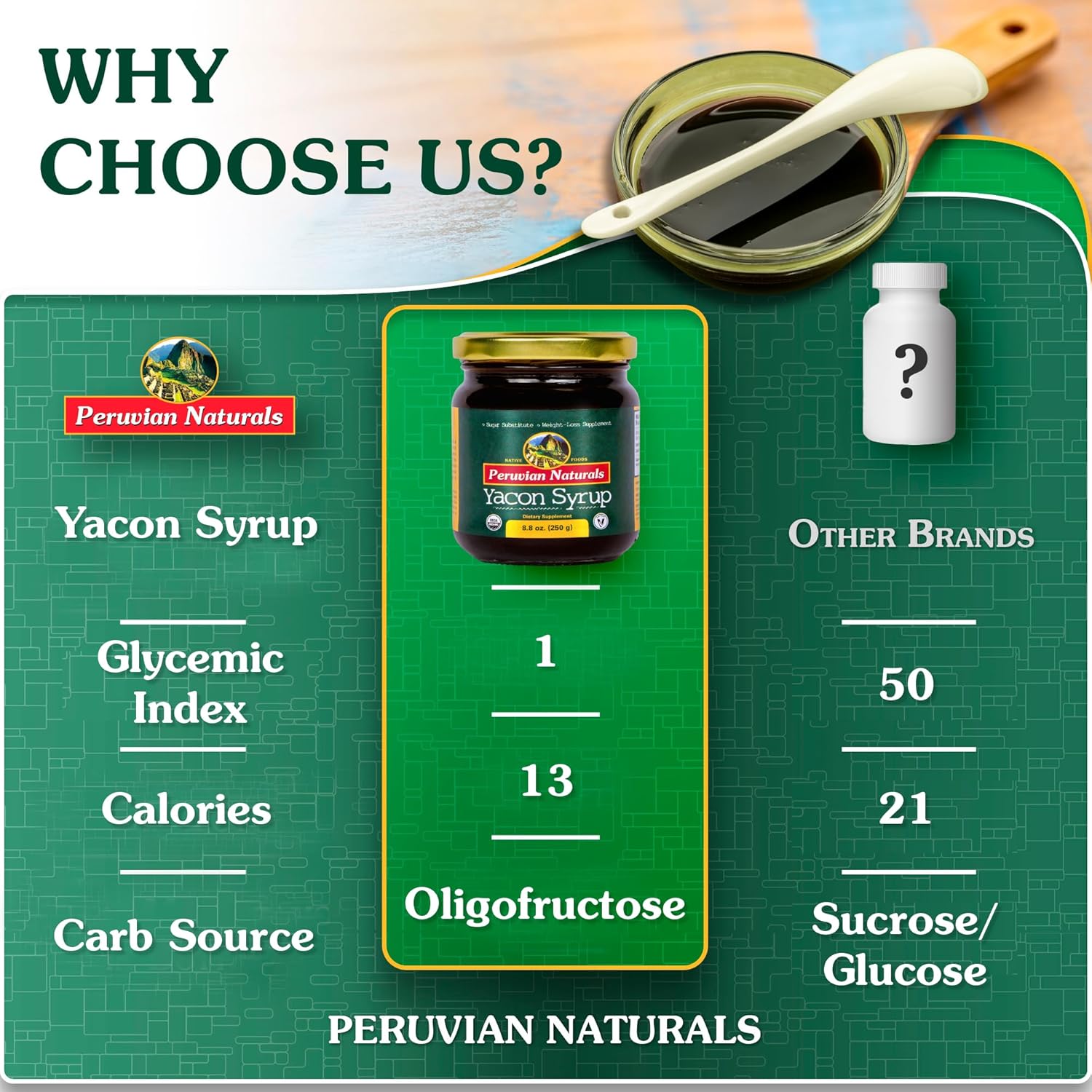 SUGAR SUBSTITUTE & KETO FRIENDLY: With only 13 calories and 4g net carbs per serving, our Yacon Syrup is a versatile alternative to traditional sweeteners like agave, honey, molasses, maple, and corn syrup. It's perfect for keto and other low-glycemic diets, offering a natural and delicious sweetness without the high sugar content