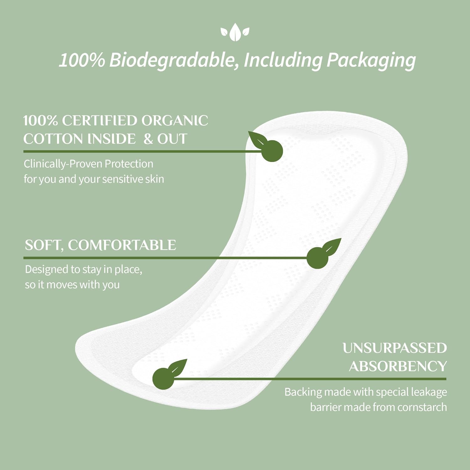 About this item 100% Certified Organic Cotton next to you and inside to absorb - These breathable panty liners have no chemicals, pesticides, or toxic materials. Just pure natural cotton liners. Our Panty and Thong Panty Liners are clinically proven to protect sensitive skin. Respect Sensitive Skin - Organyc is committed to providing the highest quality cotton products, which includes our 2-in-1 thong panty liners for women. We designed our daily liners and pads for sensitive skin. Hypoallergenic - The cotton used in Organyc pantyliners for women is constructed of compostable-organic cotton. Our thin panty liners have no latex, parabens, perfumes, SAP, plastics, or man-made materials. Ultra Absorbent - Textured for added absorbency and fiber strength, Organyc thin panty liners for women are soft but strong and have been tested and shown to absorb just as well as mainstream brands. The light-flow cotton panty liners are made with safe ingredients and pH-balanced for complete comfort. Sleek and Discreet - These thong liners for women are perfect for daytime use. Each piece of our thong liners is individually wrapped and slides easily into a pocket or zippered pouch. No clunky packaging to carry around. 2-in-1 Panty Liners Thong & Regular Style - These pantilinersā custom-shape feature allows them to adjust to the shape of the underwear. Ideal for light-flow days & spotting, these shields with a personal fit stay comfortably in place. See more product details,100% Certified Organic Cotton next to you and inside to absorb - These breathable panty liners have no chemicals, pesticides, or toxic materials. Just pure natural cotton liners. Our Panty and Thong Panty Liners are clinically proven to protect sensitive skin,Respect Sensitive Skin - Organyc is committed to providing the highest quality cotton products, which includes our 2-in-1 thong panty liners for women. We designed our daily liners and pads for sensitive skin,Hypoallergenic - The cotton used in Organyc pantyliners for women is constructed of compostable-organic cotton. Our thin panty liners have no latex, parabens, perfumes, SAP, plastics, or man-made materials,Ultra Absorbent - Textured for added absorbency and fiber strength, Organyc thin panty liners for women are soft but strong and have been tested and shown to absorb just as well as mainstream brands. The light-flow cotton panty liners are made with safe ingredients and pH-balanced for complete comfort,Sleek and Discreet - These thong liners for women are perfect for daytime use. Each piece of our thong liners is individually wrapped and slides easily into a pocket or zippered pouch. No clunky packaging to carry around,2-in-1 Panty Liners Thong & Regular Style - These pantilinersā custom-shape feature allows them to adjust to the shape of the underwear. Ideal for light-flow days & spotting, these shields with a personal fit stay comfortably in place