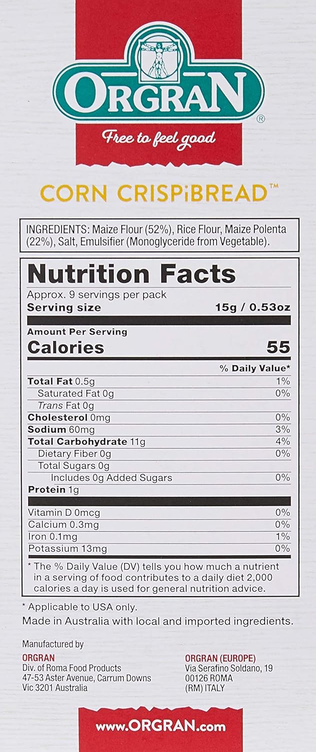 About The Product : Orgran Toasted Corn Crispbread 125g