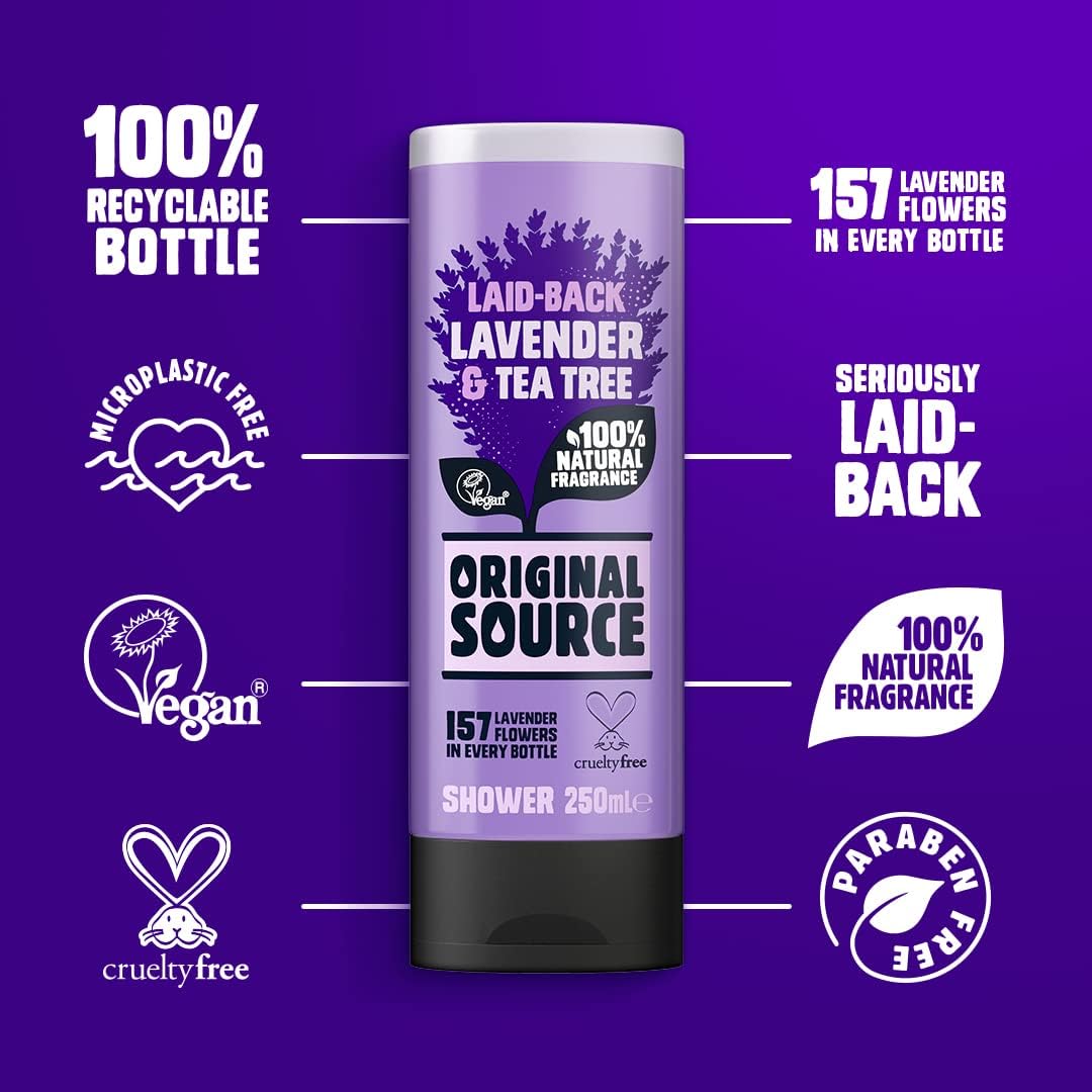 Original Source Lavender Shower Gel, 100 Percent Natural Fragrance, Vegan, Cruelty Free, Paraben Free, Bulk Buy, Pack Of 6 X 250 Ml