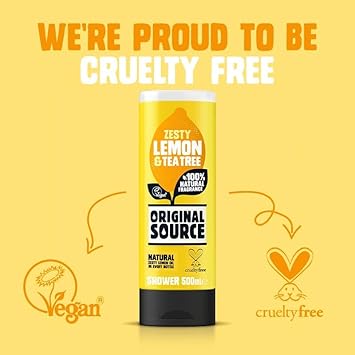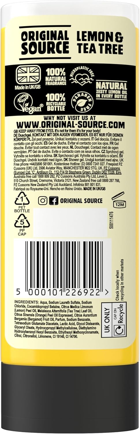 Original Source Lemon & Tea Tree Shower Gel, 100 Percent Natural Fragrance, Vegan, Cruelty Free, Paraben Free, Bulk Buy, Pack Of 6 X 500 Ml