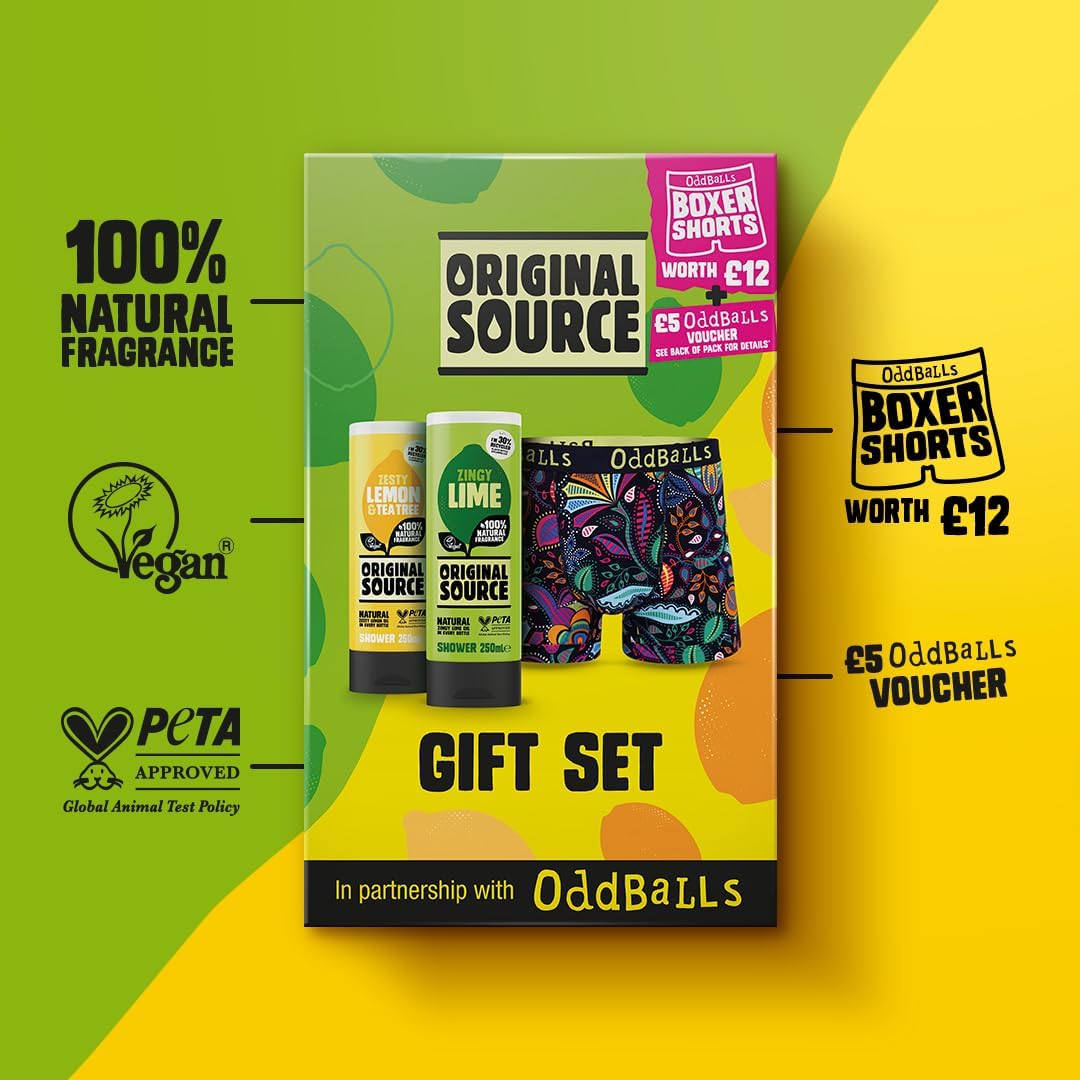 Original Source X Oddballs Gift Set, Lime Shower Gel, Lemon & Tea Tree Shower Gel, Oddballs Boxers, Gifts For Men, Birthday Gift, 100 Percent Natural Fragrance, Vegan, Cruelty Free