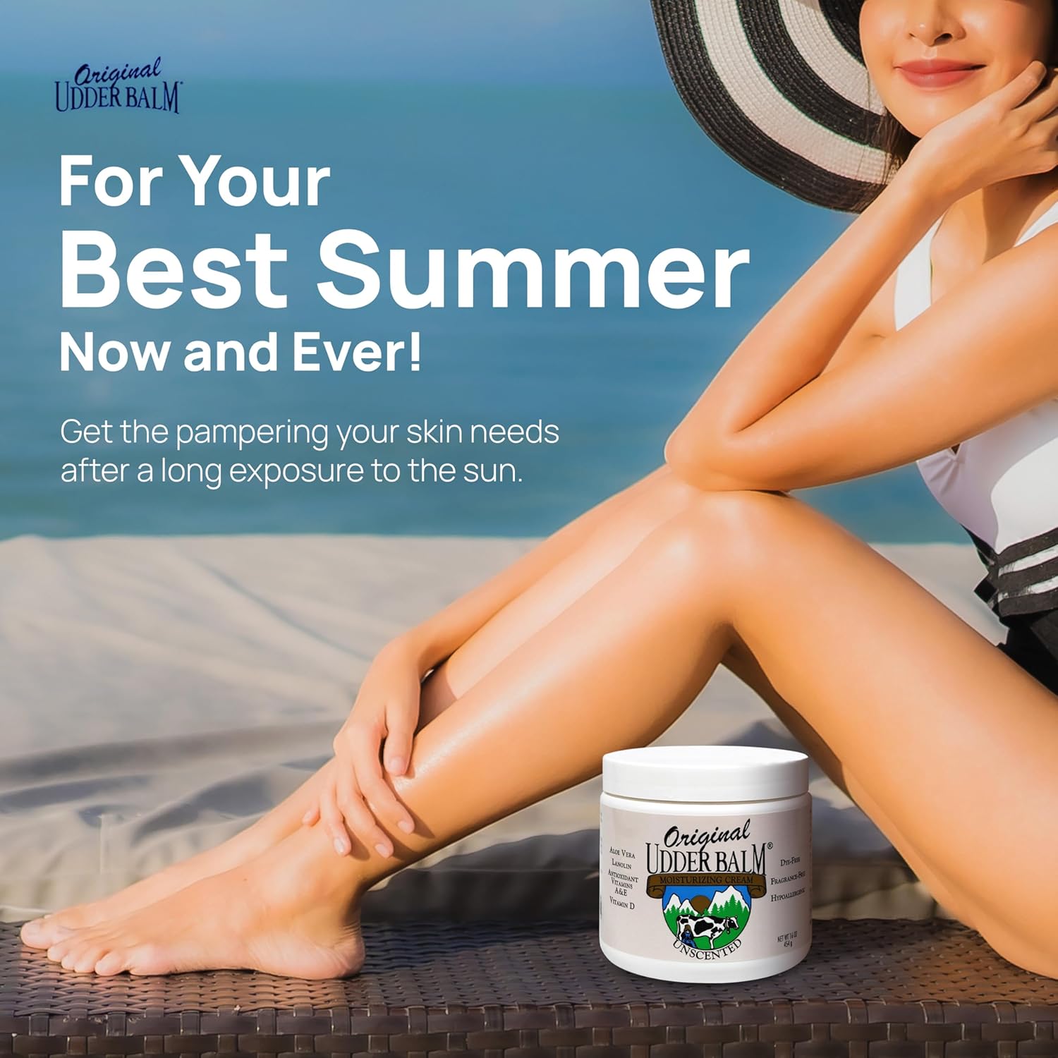 Original Udder Balm Unscented Jar - Made In Usa - Hypoallergenic Moisturizer Cream For Dry, Cracked Skin, 16 Oz