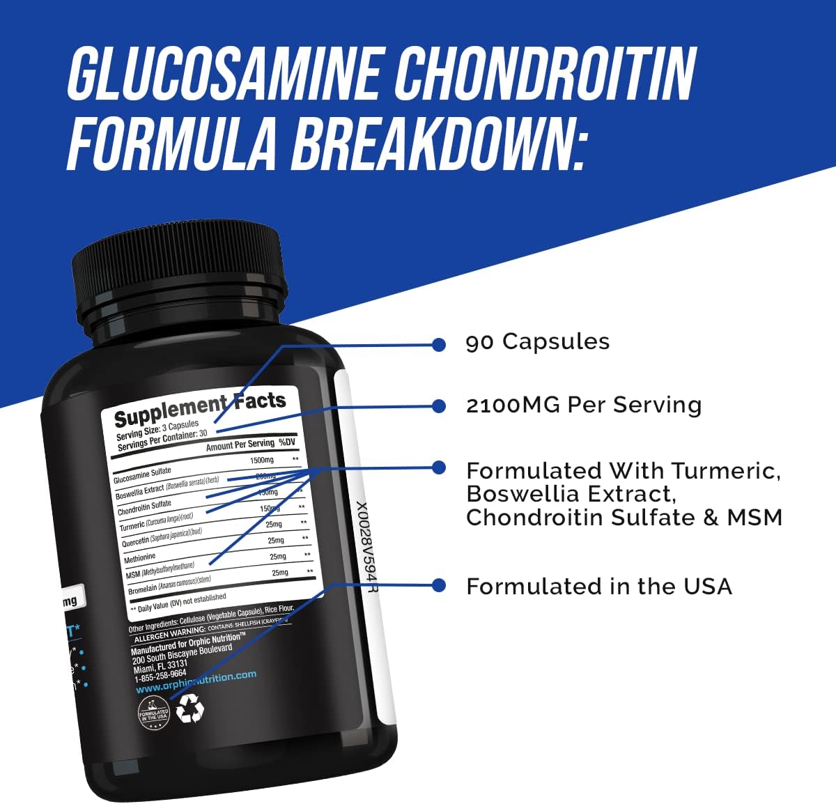 Orphic Nutrition Glucosamine Chondroiting Msm 2100Mg (90 Caps) - Joint Support Supplement For Men & Women* - Supports Joint Cartilage & Mobility
