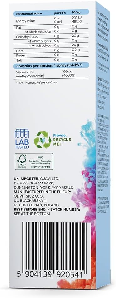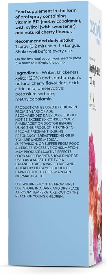 Osavi Methyl–B12, 100 µg – 25 ml Oral Spray | Cherry Flavor | Supports Nervous System & Immune Function | Vitamin B12 for Energy Metabolism | Reduces Fatigue & Supports Red Blood Cell Formation : Amazon.co.uk: Health & Personal Care
