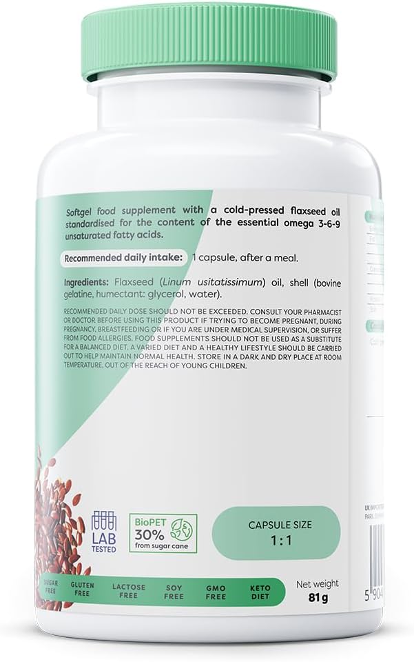 Osavi Omega 3–6–9 Flaxseed Oil 1000 Mg – 60 Softgels | Cold–Pressed Flaxseed Oil With Essential Omega 3–6–9 Fatty Acids | Rich In Unsaturated Fatty Acids