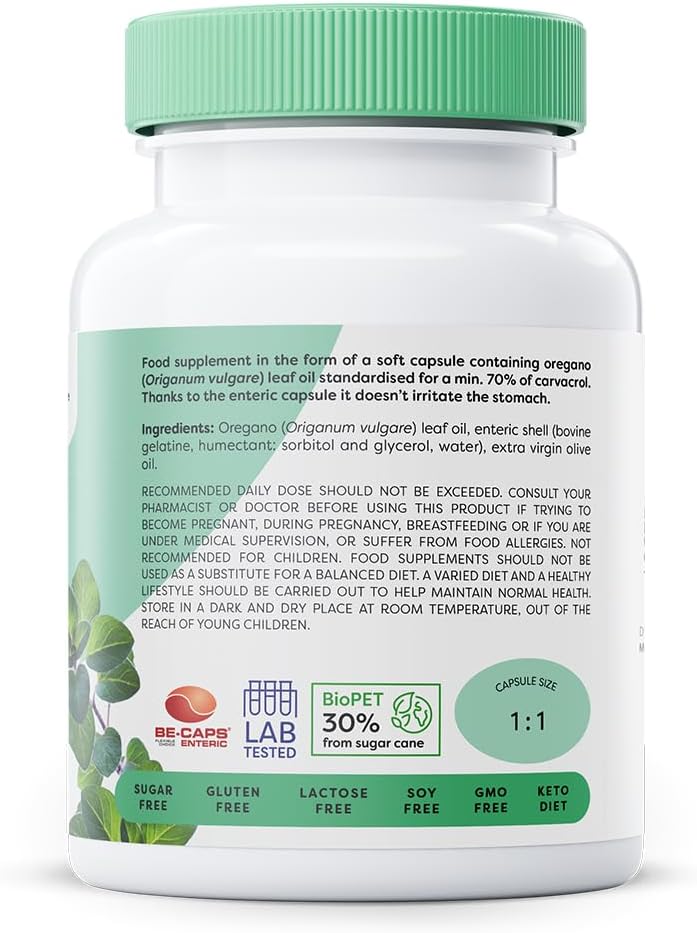 Osavi Oregano Oil β 60 Enteric Softgels | Standardized for 70% Carvacrol | Enteric Capsules to Prevent Stomach Irritation