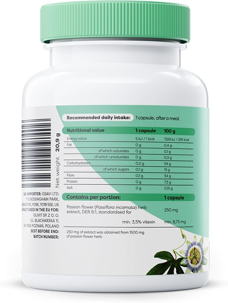 Osavi Passiflora 250 Mg β 60 Vegan Capsules | Standardized Passion Flower Extract For Relaxation & Sleep Support | Helps With Mental Tension & Anxiousness