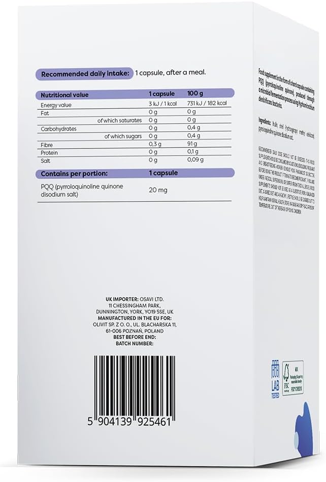 Osavi Pqq 20 Mg β 60 Vegan Capsules | Microbially Fermented Pyrroloquinoline Quinone For Cellular Health Support