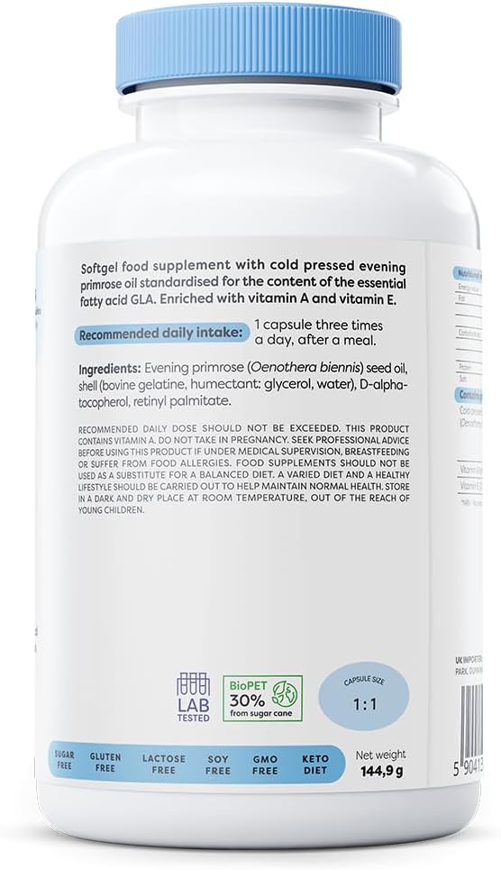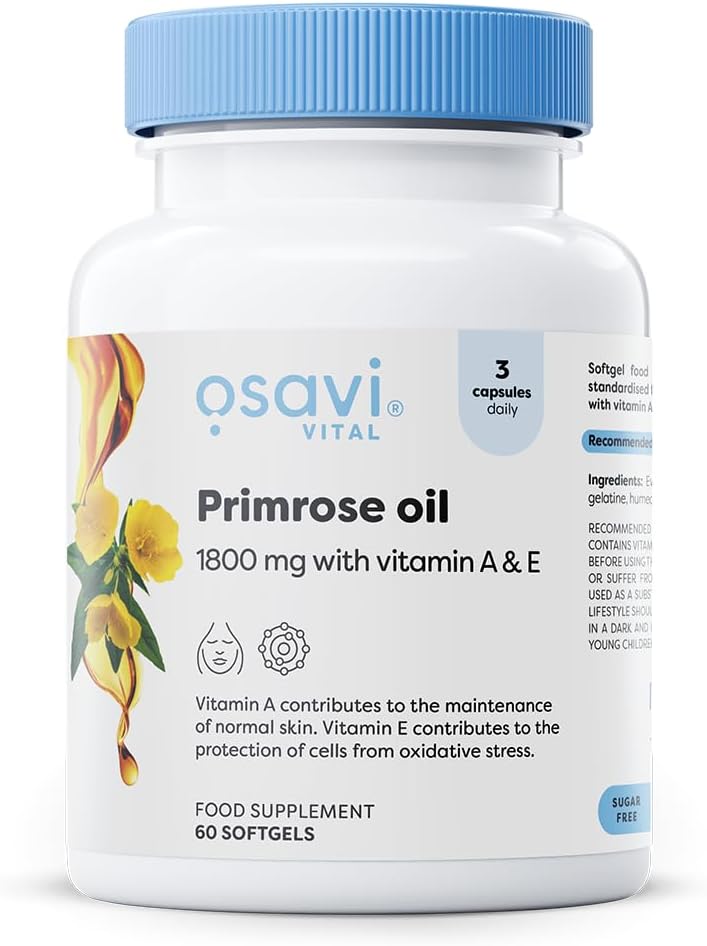 Osavi Primrose Oil 1800 Mg With Vitamin A & E – 180 Softgels | Cold–Pressed Evening Primrose Oil With Gla, Enriched With Vitamin A & E | Supports Skin Health & Cell Protection
