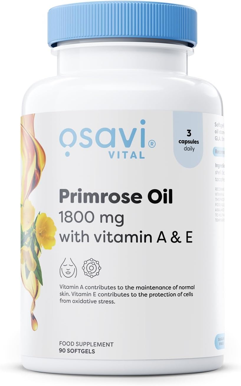Osavi Primrose Oil 1800 Mg With Vitamin A & E – 90 Softgels | Cold–Pressed Evening Primrose Oil With Gla, Enriched With Vitamin A & E | Supports Skin Health & Cell Protection