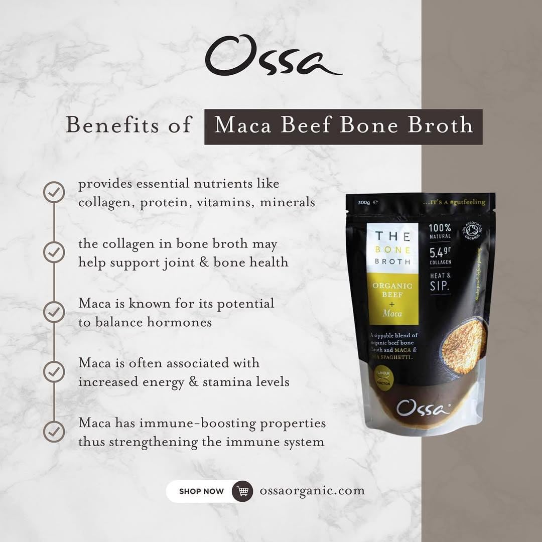 Ossa Organic Beef Bone Broth With Maca & Sea Spaghetti β Grass-Fed, Protein-Rich Superfood For Gut Health, Energy & Immunity | Keto & Paleo Friendly | 300G