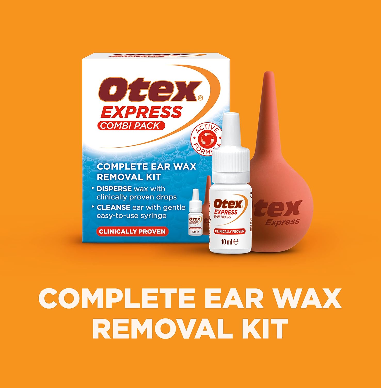 Otex Express Combi Pack, Clinically Proven Ear Wax Removal Kit With Drops And Bulb Syringe For Excessive, Hardened Ear Wax, 10Ml