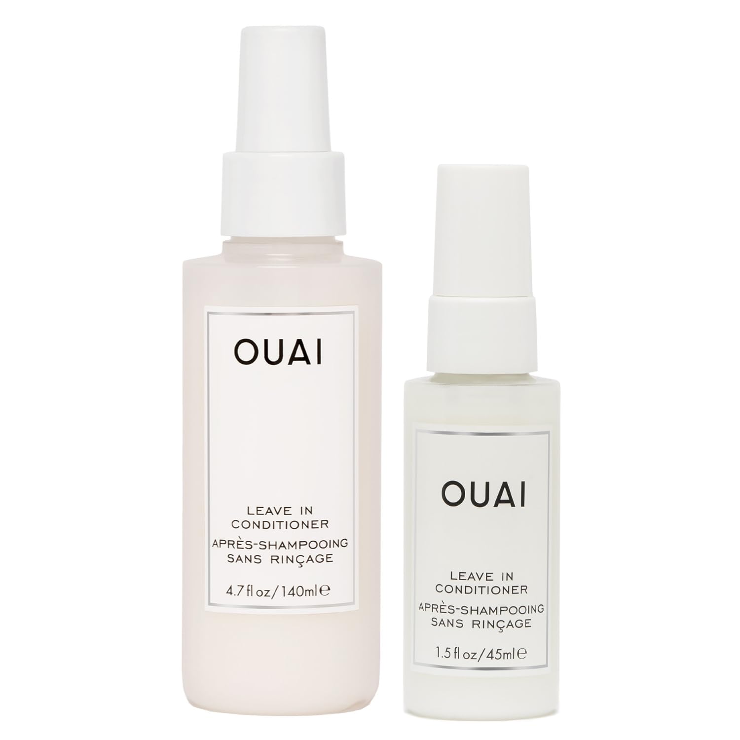 OUAI Leave In Conditioner Bundle - Multitasking Heat Protectant Spray for Hair - Prime Hair for Style, Smooth Flyaways, Add Shine & Use as Detangling Spray (2 Count, 1.5 Oz/4.7 Oz)