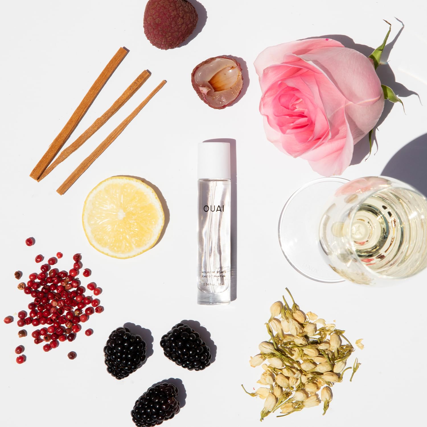 We bottled the good taste of Melrose Place. Smell like LA sunsets and valet parking, this velvety-rich rose fragrance has hints of bergamot, lychee, cedarwood, and white musk. Take this small perfume with you anywhere—It's TSA-friendly making it an excellent travel size perfume for women. Perfect For Day to night, LA vibes, fresh & floral Not your grandma’s rose perfume. Melrose Place has a velvety-rich rose scent infused with a swoon-worthy blend of bergamot, lychee, white musk, champagne, and more. Smell like you only eat avocado toast. Note: Aerosol products cannot be shipped to Alaska or Hawaii. Is this recyclable Recycle the glass bottle, throw away the collar, sprayer, & cap! That goes for all OUAI women's fragrances. How To Use Apply our rose perfume on freshly cleansed damp skin. Spray on the wrist and massage into the neck and behind the ears, trying not to rub it in (rubbing can cause The Scent to lose its longevity). Spray behind the knees and in creases of elbows for total body fragrance experience. The Scent: Melrose Place A one-OUAI ticket to L.A., Melrose Place has a velvety-rich rose scent infused with a swoon-worthy blend of bergamot, lychee, white musk, champagne, and moreOUAI Melrose Place Eau De Parfum - The same favorite scent from OUAI's hair treatments, oils and scrubs is now beautifully bottled in our lineup of perfumes for womenFrom Day to Night - Whether you're heading to the office or on a hot date, add a spritz of Melrose Place eau de parfum for women to your wrists and decolletage. The fresh floral scent with champagne, bergamot and rose transitions easily from day to nightHit All the Right Notes - This fragrance has top notes of champagne, pink peppercorn, berry and lychee with base notes of amber, sandalwood, white musk and cedarwood, and middle notes of peony, rose, freesia, jasmine and bergamotSmell this OUAI All Day - Apply this long lasting perfume for women on freshly cleansed, damp skin. Spray on the wrist, trying not to rub it in (rubbing can cause the scent to lose its longevity). Spray behind the knees and in creases of elbows for a total body fragrance experience