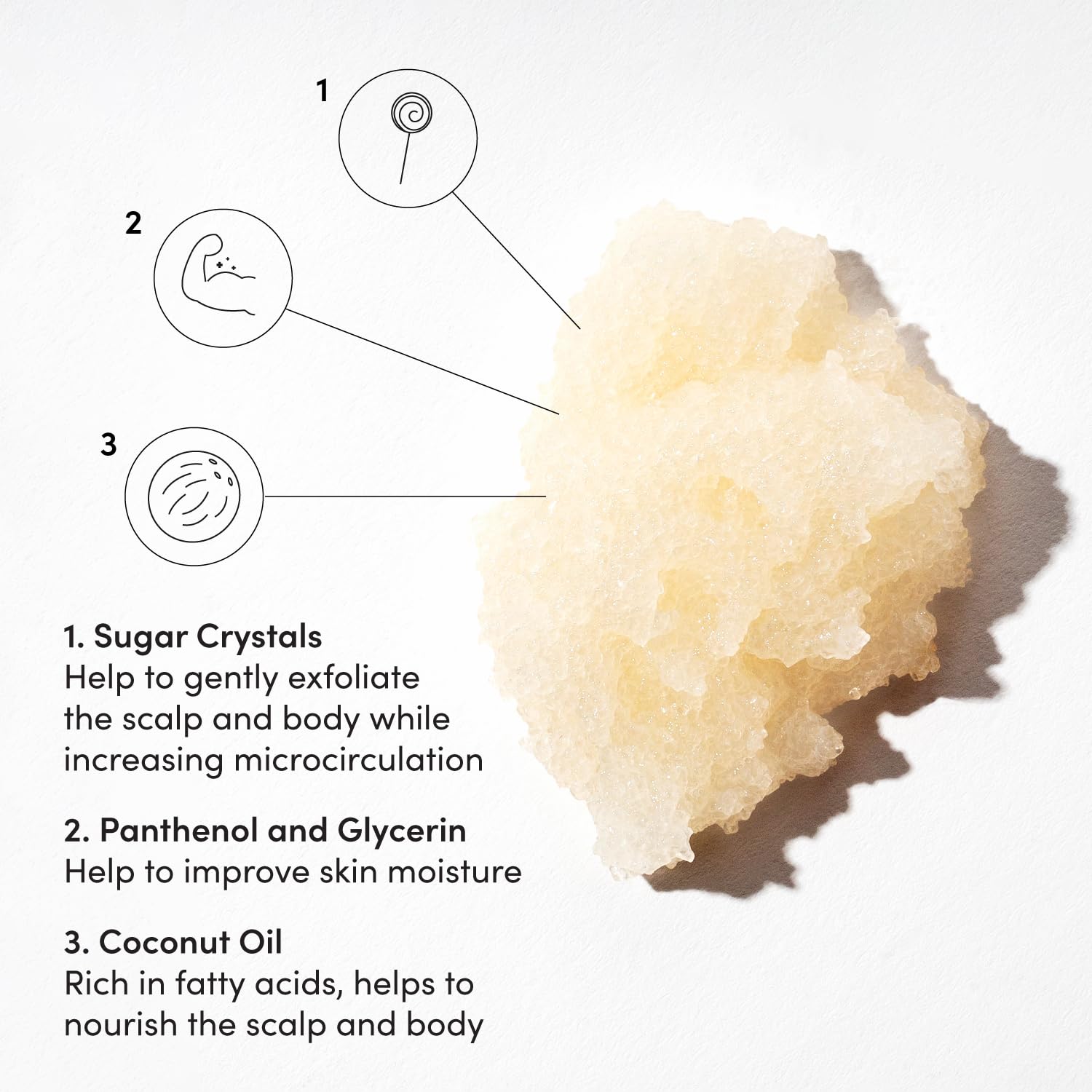 OUAI Scalp & Body Scrub, St. Barts - Foaming Coconut Oil Sugar Scrub and Gentle Scalp Exfoliator Cleanses, Removes Buildup, and Moisturizes Skin - Paraben, Phthalate and Sulfate Free Body Care (3.4oz)