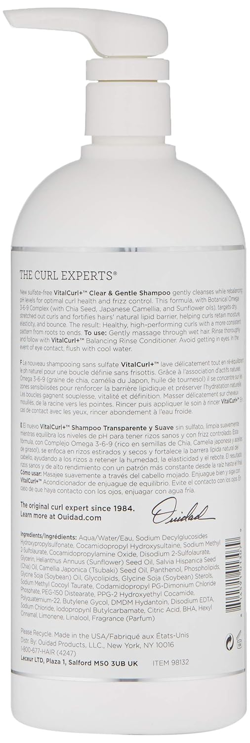 Ouidad Vitalcurl+ Clear & Gentle Shampoo Liter Size, 33.8 Oz
