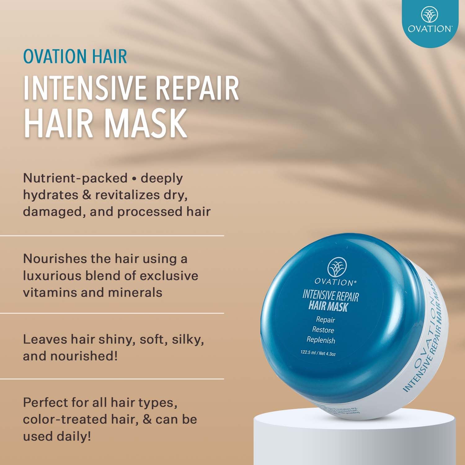 Lustrous Deep-Conditioning Hair Mask: Our Intensive Repair Hair Mask is made for dry, damaged hair to be used in addition to your Ovation haircare routine. Its nutrient-packed formula deeply hydrates and revitalizes dry, damaged, and processed hair, leaving it shiny, soft, silky, and nourished