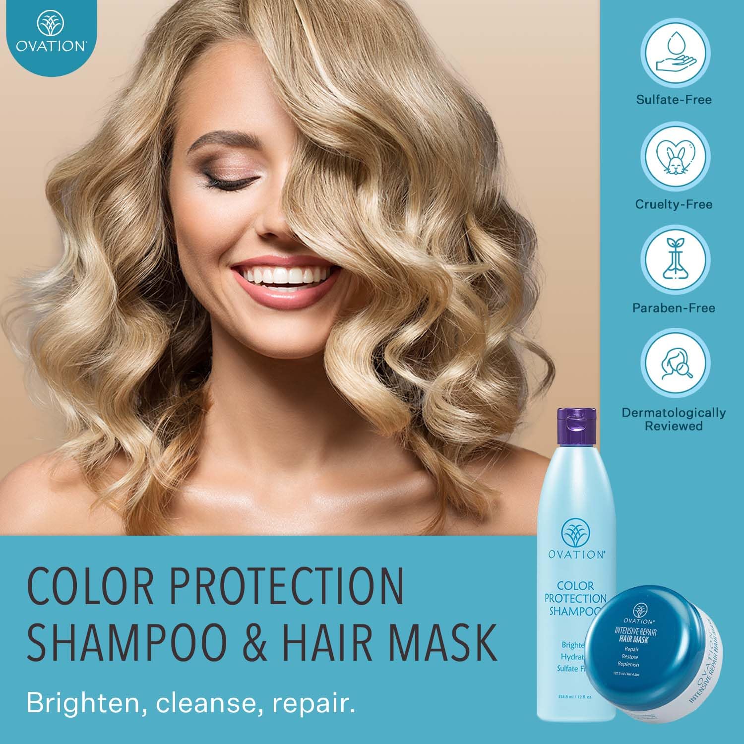 Ovation Hair Cleanse & Repair Bundle for Color-Treated Hair with 12 oz Color Protection Shampoo & 4.3 oz Intensive Repair Protein Hair Mask