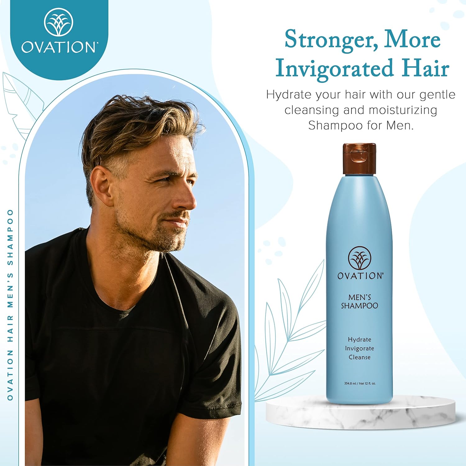 Salon-Quality Shampoo: Ovation Men's Shampoo gently cleanses the hair, removing excess oil and build-up while leaving strands moisturized. Contains active ingredients like rice, burdock root, and carya ovata bark extracts with no sulfates or parabens. It also offers a protective layer against heat to those who frequent outdoors