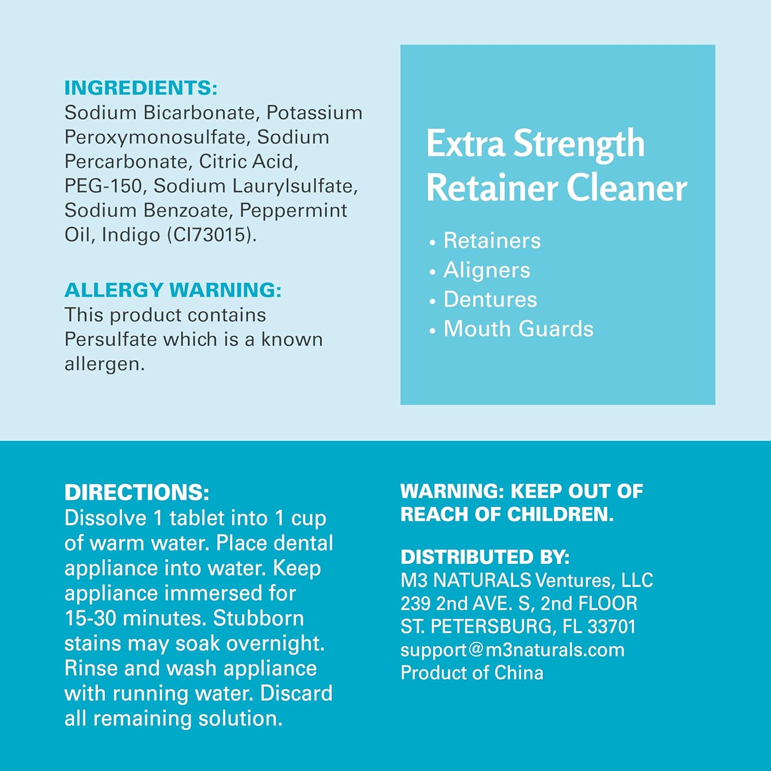 M3 Naturals Extra Strength Cleaning Tablets are laboratory tested working to restore clarity by removing unwanted odor and buildup in every corner of any oral dental appliance and denture bath