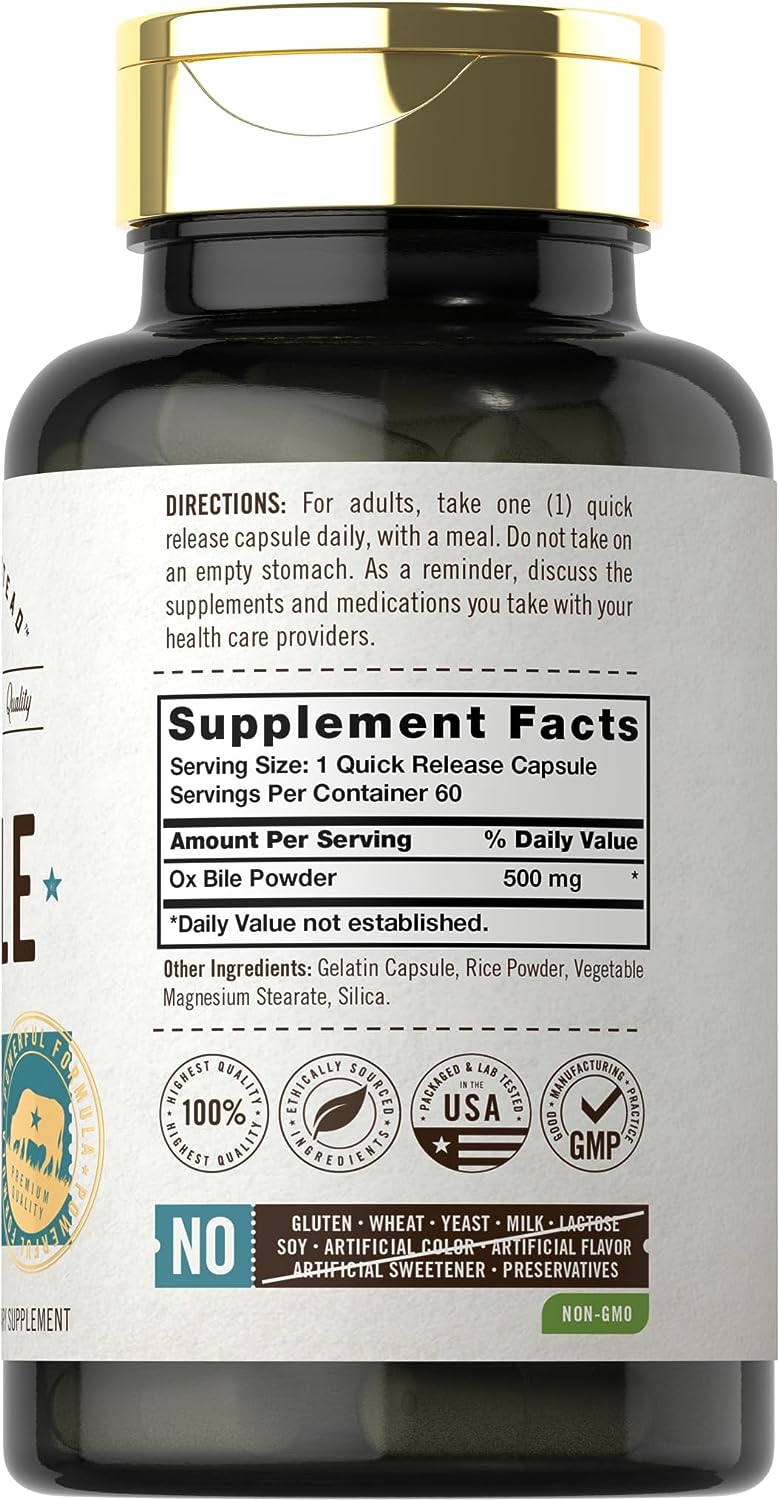 Ox Bile Supplement | 500Mg | 60 Capsules | Digestive Enzyme | Non-Gmo & Gluten Free | By Herbage Farmstead