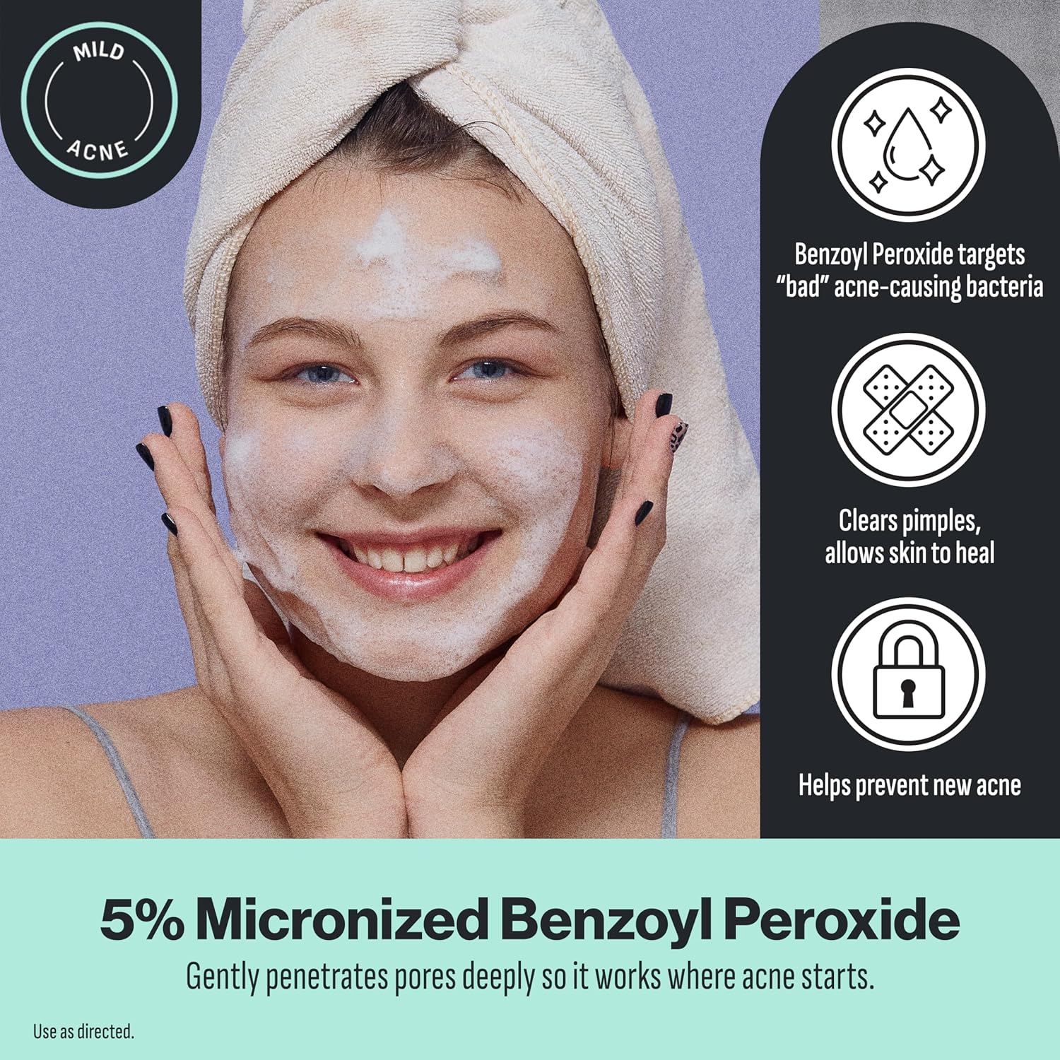QUICKLY KILLS ACNE-CAUSING BACTERIA: Oxy Benzoyl Peroxide Face Wash for teens quickly works above and below the skinâs surface to treat emerging acne and help prevent new acne from forming