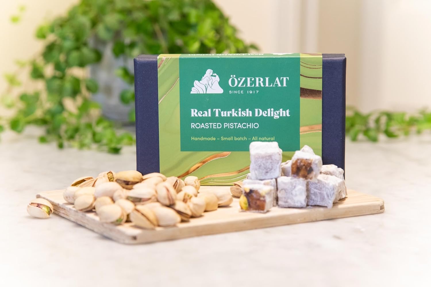 Ozerlat Real Turkish Delight, Roasted Pistachio β Luxury Gourmet Artisan Dessert Sweets, Premium Quality Natural Ingredients, Vegan, Gluten Free, (200G)