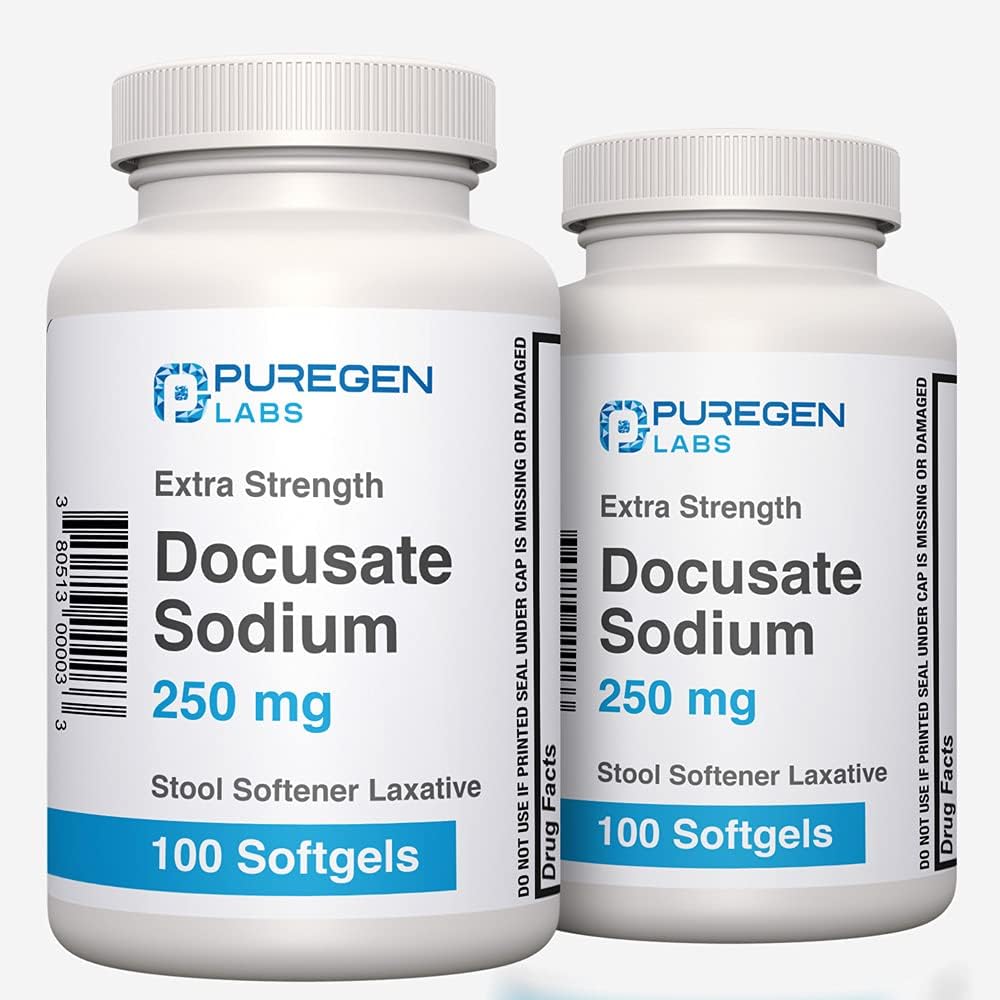 P Puregen Labs Docusate Sodium 250Mg Stool Softener Laxative 200 Softgels Total Gentle Constipation Relief Extra Strength Stimulant Free 2 Pack