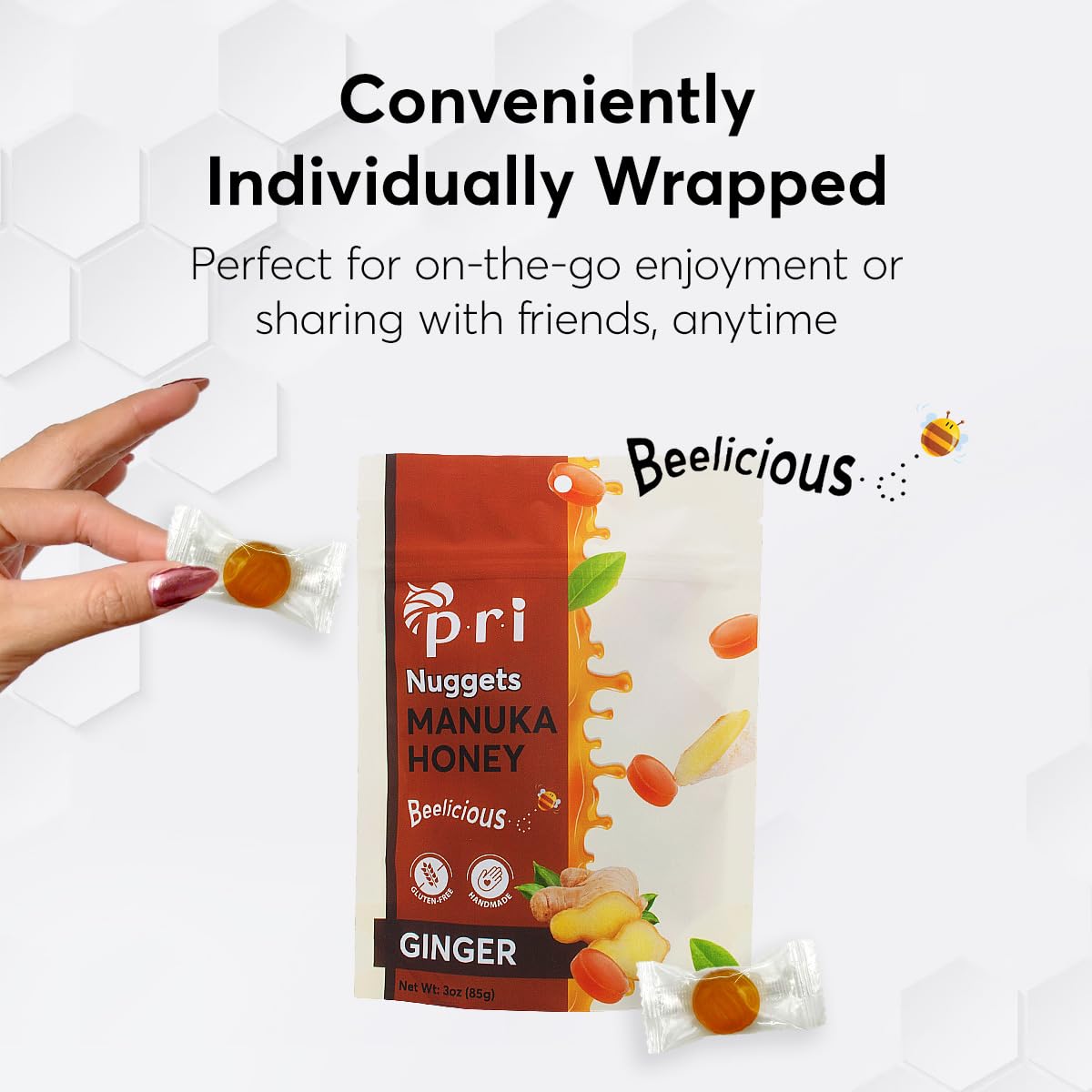 DELICIOUS AND SATISFYING: Satisfy your sweet tooth with our tasty ginger-flavored Manuka Honey Nuggets. These flavorful nuggets contain energy and immunity boosting manuka honey!