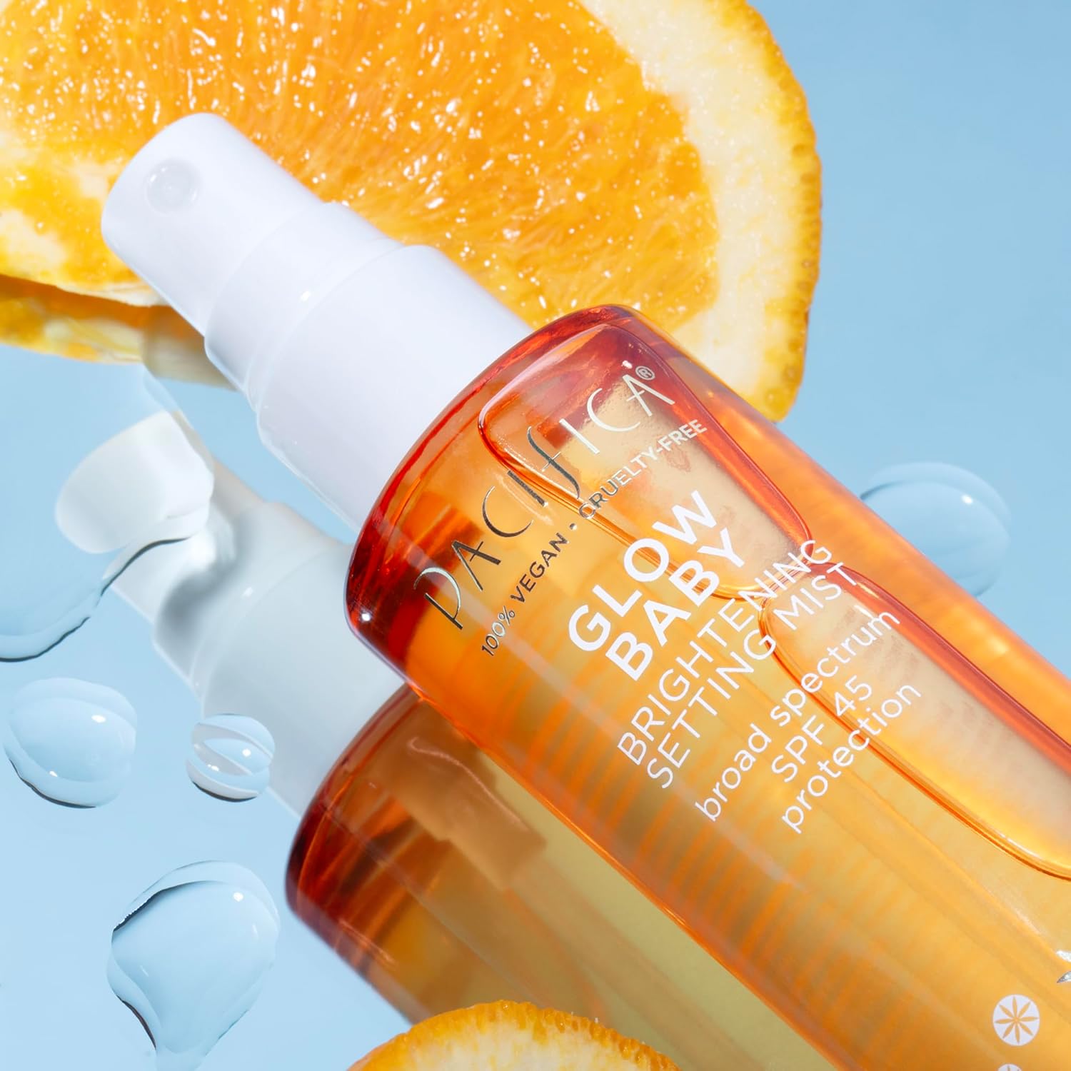 Pacifica Beauty Glow Baby Brightening Setting Mist, Broad Spectrum Spf 45, Makeup Setting Spray, Uva/Uvb Protection, Blue Light Protection, Facial Mist, Suncare, Skin Care, Vegan, 1.7 Fl Oz (1 Count)