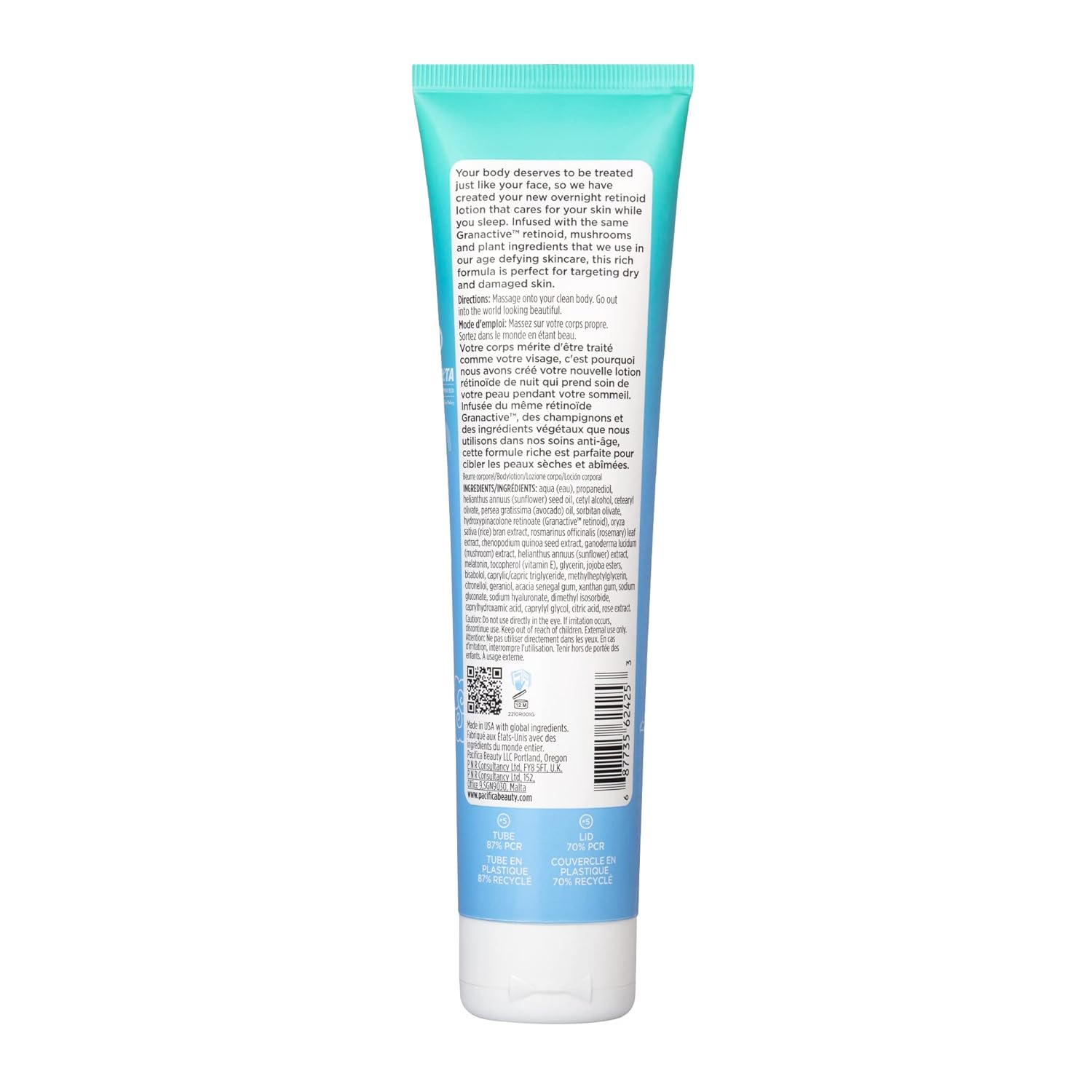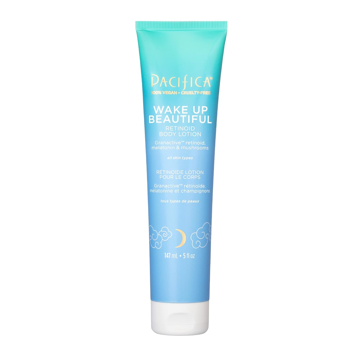 Pacifica Beauty, Wake Up Beautiful Retinoid Body Lotion, Plumps, Renew Elasticity, Hydrating, Petroleum-Free, Body Moisturizer, Mushrooms, Melatonin, For Dryness & Fine Lines, Night Body Cream, Vegan