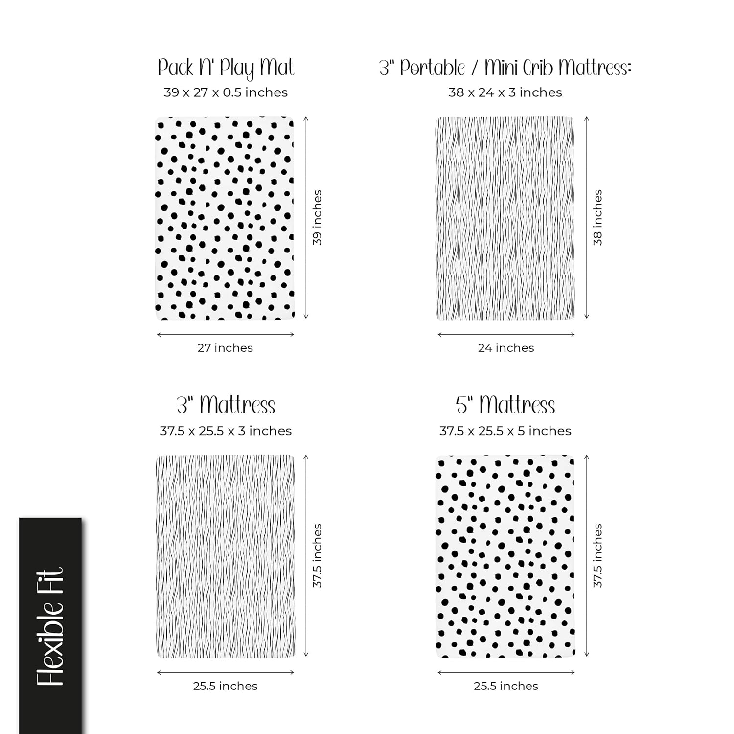 Pack N Play Playard Sheet | Portable Crib Sheet Set 2 Pack Black And White Abstract Stripes And Dots By Ely'S & Co