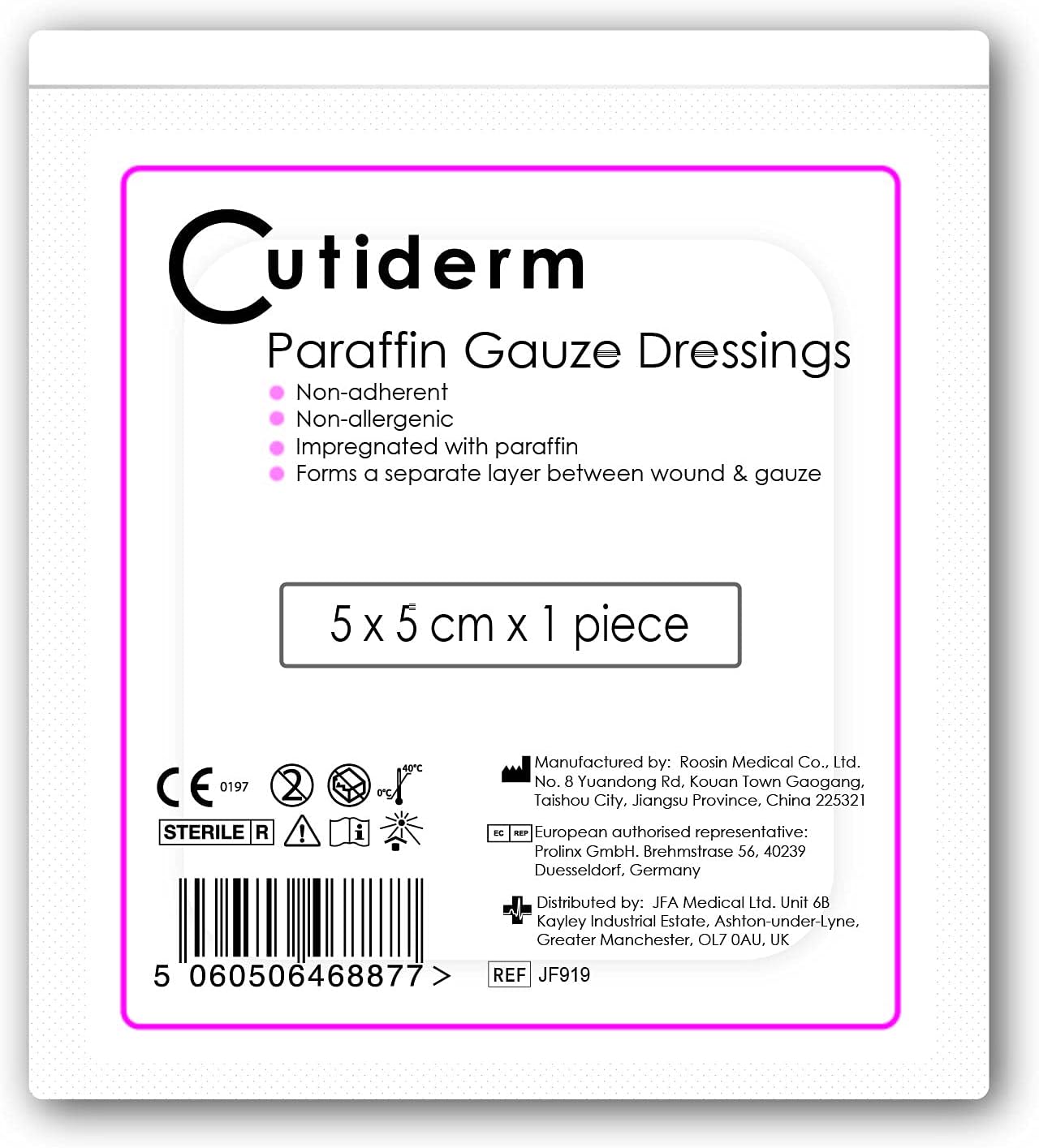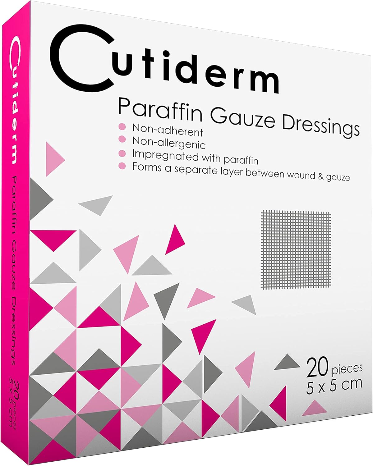About this item Cutiderm sterile paraffin gauze dressings 5cm x 5cm - Pack of 20 Suitable for scratches, grazes, superficial and partial thickness burns, skin loss wounds and abrasions Non-adherent, non allergenic, impregnated with paraffin, A Sterile CE certified product Cutiderm brand › See more product details,Cutiderm sterile paraffin gauze dressings 5cm x 5cm - Pack of 20,Suitable for scratches, grazes, superficial and partial thickness burns, skin loss wounds and abrasions,Non-adherent, non allergenic, impregnated with paraffin,A Sterile CE certified product,Cutiderm brand