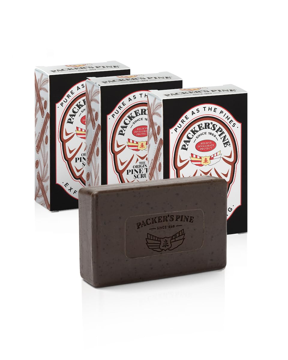 Packer'S Pine Tar Scrub Soap | The Original Mens Body Soap Made With Natural Pine Tar And Pine Oils | All Natural Mens | Paraben, Sulfate, And Creosote Free (3 Pack)