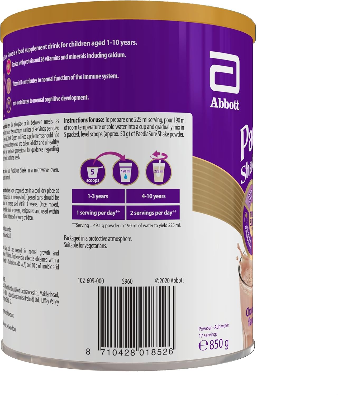 Paediasure Shake – Chocolate Flavour – 850G – Balanced Nutritional Supplement Drink – Multivitamin For Kids – With Protein, Carbohydrates & Minerals – Supports Growth & Development – Vegetarian
