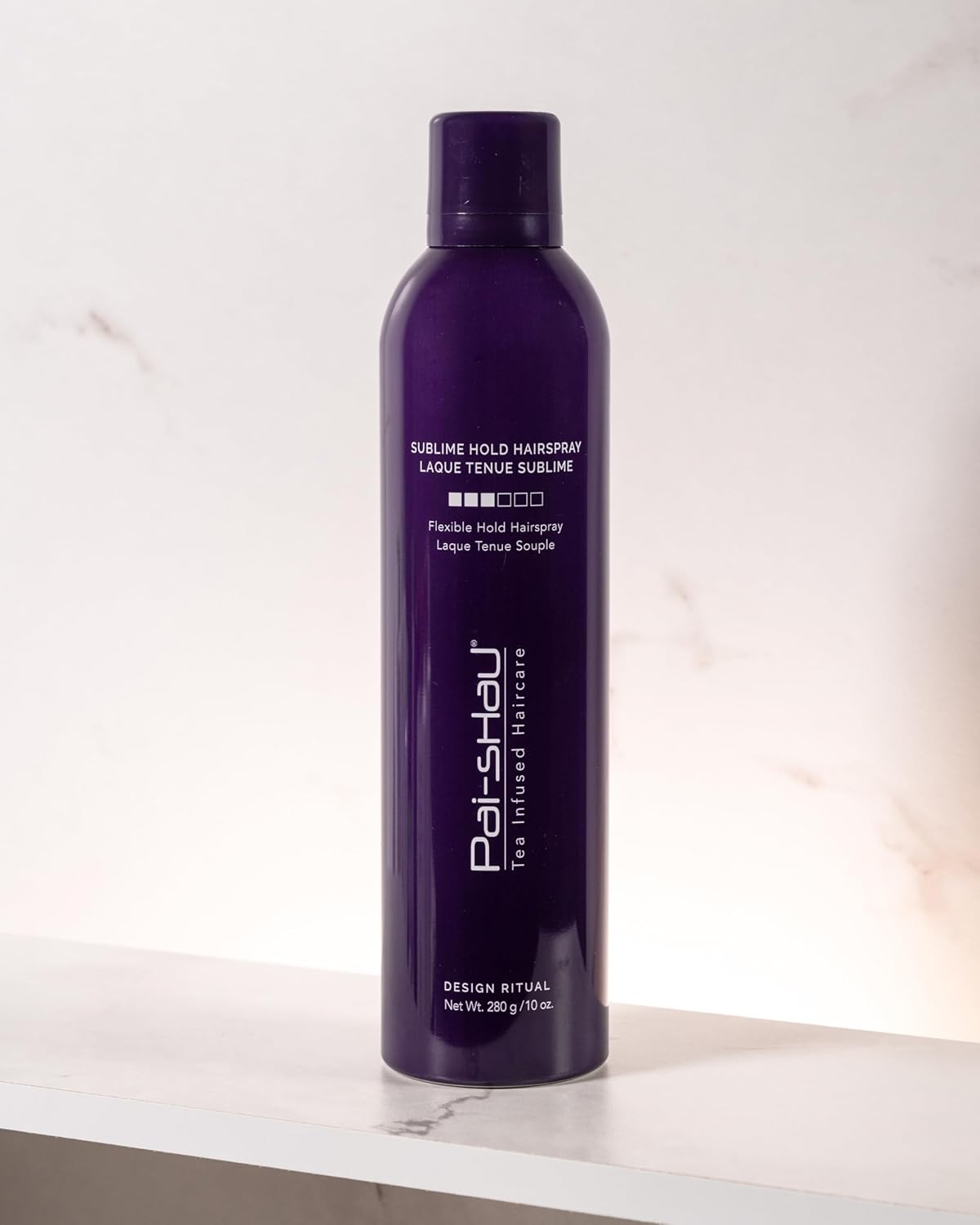 Product Description Description Sublime Hold Hairspray offers a flexible medium hold with absolutely no build-up or flaking. Featuring our Signature Tea Complex, it also provides beautiful shine and protection from environmental stressors, leaving hair styled and in place but still touchable and moveable. How to use Hold can 8-10 inches from hair and spray on dry hair for a flexible hold and humidity protection. Benefits Provides a movable, touchable hold Humidity protection Flake free Signature Tea Complex Color-safe Keratin safe Vegan and Cruelty-Free Paraben Free Sulfate Free Complementary Products Use with Texture Dust for extra hold and added lift. Sublime Hold Hairspray is the perfect finishing spray for any style. Brand Story Pai-Shau’s Signature Tea Complex blends a variety of enriching teas, nourishing vitamins, and protective antioxidants in a rich formula that soothes the scalp and leaves hair hydrated and silky soft with an illuminating gloss,Flexible Medium Hold Without Build-Up: Sublime Hold Hairspray offers a medium, flexible hold to keep your hairstyles in place all day. The advanced formula prevents build-up or flaking,Enhanced Shine and Protection: Infused with our Signature Tea Complex, Sublime Hold Hairspray enhances your hair's natural shine and shields it from environmental stressors, helping preserve its vitality and lustrous look even in challenging conditions,Touchable and Moveable Hair: Experience a medium hold that maintains your style while allowing for natural movement. Sublime Hold Hairspray ensures that your hair remains touchable and flexible so you can run your fingers through it without compromising your look,No Flaking or Residue: Say goodbye to unsightly flakes and residue with Sublime Hold Hairspray. This high-performance formula provides a clean, flake-free finish, ensuring your hairstyle looks immaculate from morning to night,Versatile Styling with Lasting Results: Whether you want a sleek, sophisticated look or a relaxed, tousled style, Sublime Hold Hairspray offers versatile performance. Its innovative formula maintains your desired style while providing flexible movement and a radiant shine. Perfect for everyday use, it keeps your hair looking its best