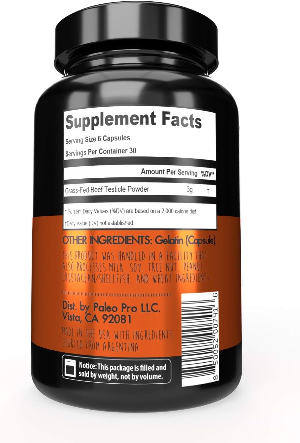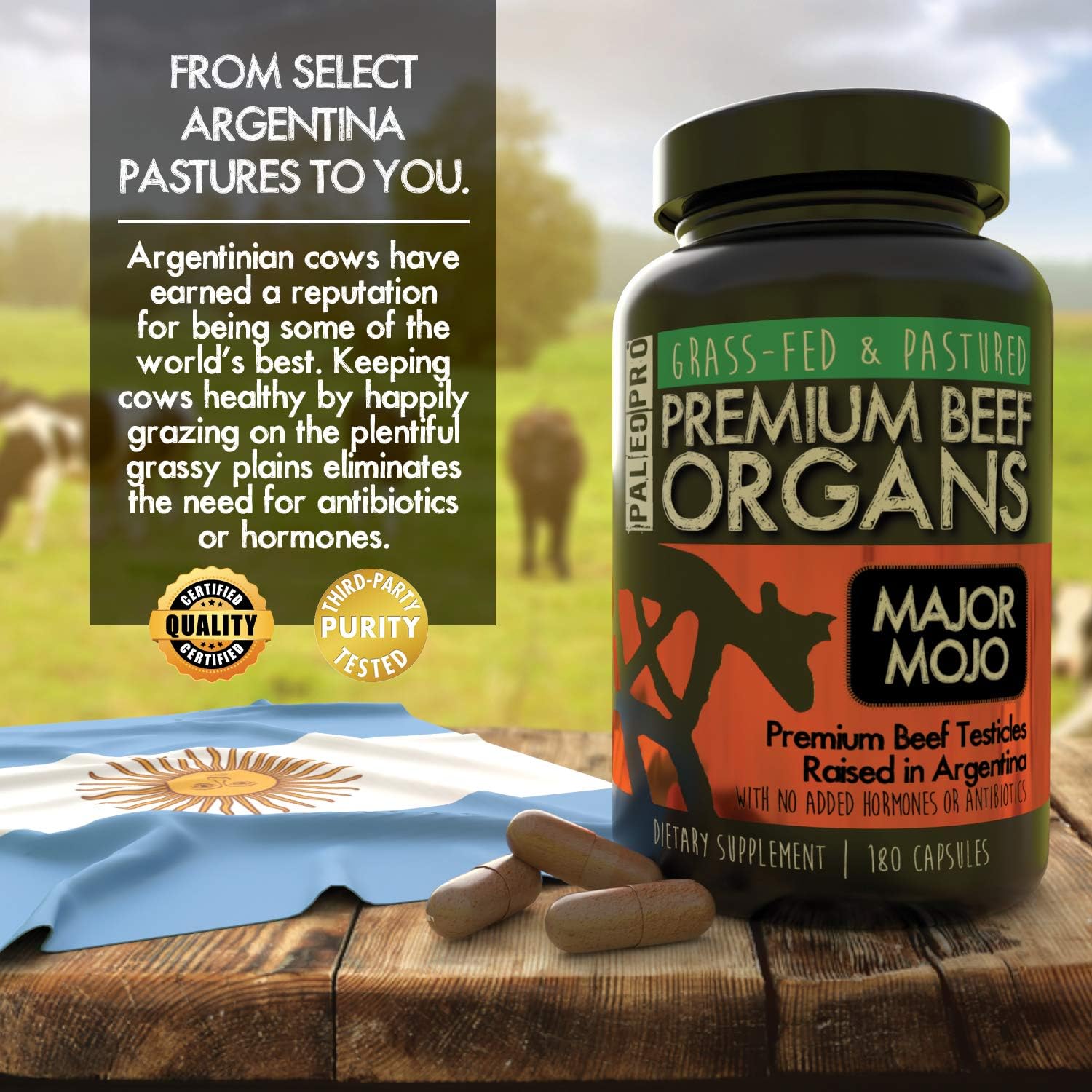 DESCRIPTION : Paleo Pro Major Mojo Premium Beef Organs Capsules, Beef Testicles from Grass Fed and Pastured Argentinian Cows, Dietary Supplement, No Added Hormones or Antibiotics, 180 Capsules