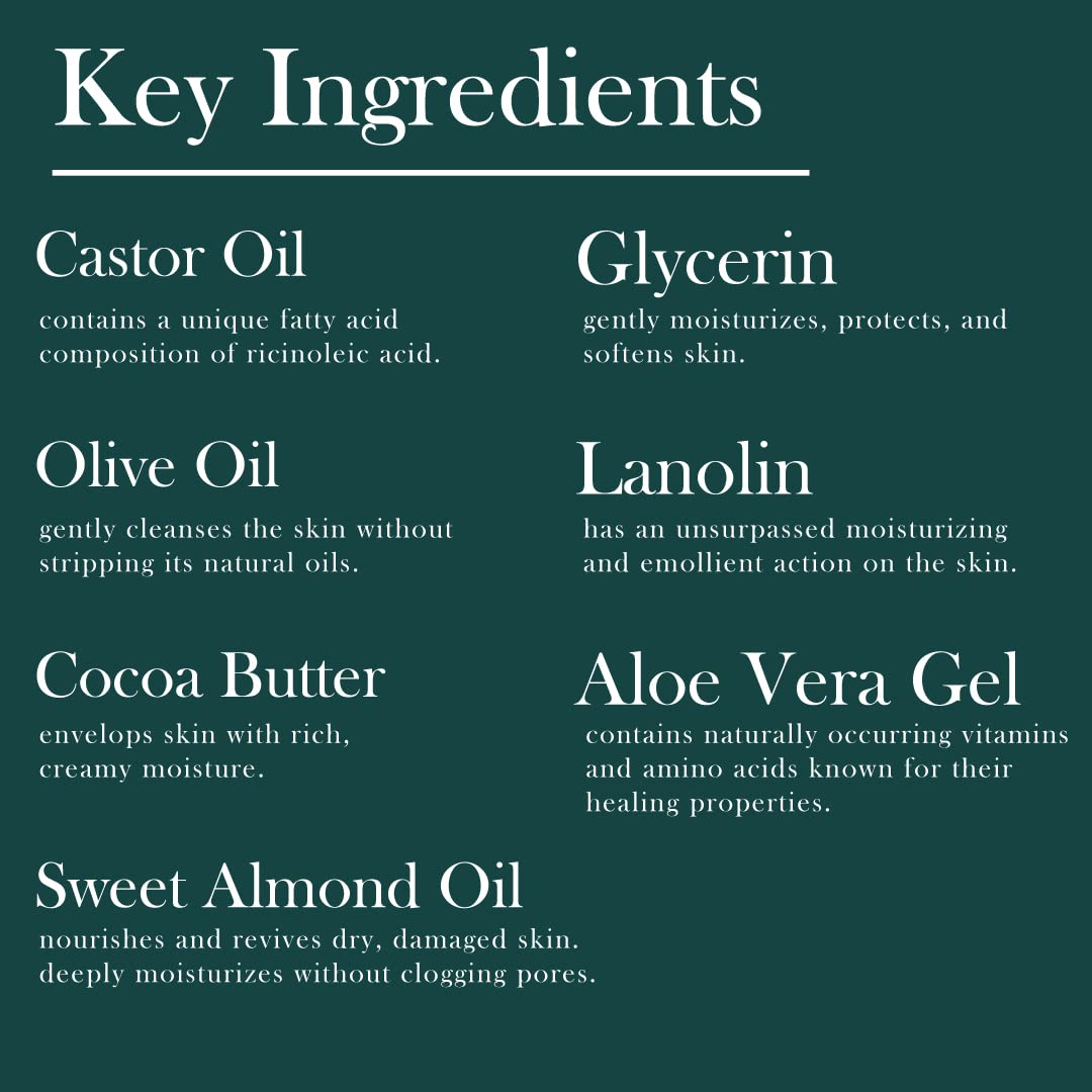 Specially formulated with Castor Oil, Cocoa Butter & Almond Oil