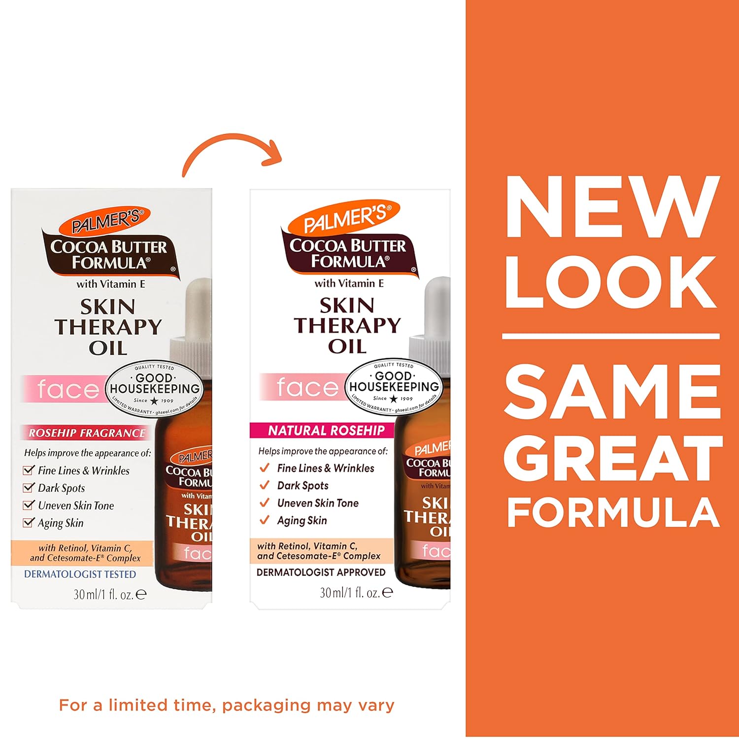 Palmer's Cocoa Butter Formula Skin Therapy Face Oil transforms your skin with a powerful blend of 10 pure precious oils, Retinol, Vitamin C and our exclusive Cetesomate-E Complex. Skin restorative oils along with natural Cocoa Butter, Retinol and Vitamin C deliver multi-purpose, anti-aging skin benefits. Ten Pure Oils help moisturize and smooth fine lines and wrinkles while Retinol and Vitamin C help improve and brighten tone and texture. Different from a moisturizer face cream, this lightweight, non-greasy face oil for women absorbs quickly, while the Cetesomate Complex helps deliver all of the essential vitamins and nutrients directly into the epidermal layer of the skin. This rosehip oil for face will leave your skin younger-looking with a more glowing and firm appearance that you crave,Moisturizing Face Oil: Skin Therapy Oil for Face delivers skin restorative oils for multi-purpose, anti-aging skin benefits with ten Pure Oils to help moisturize and smooth fine lines and wrinkles,Special Formula: Made with Cocoa Butter to moisturize, Retinol to reduce the appearance of fine lines and wrinkles, Vitamin C to brighten skin and dark spots, and Cetesomate Complex for essential vitamins and nutrients,Finest Ingredients: We use only the finest natural, raw ingredients for soft, hydrated and beautiful hair & skin. We support sustainable production of Shea & Cocoa Butter and Coconut Oil. You can feel good about what you put on your hair and skin,Choose What's Real: Our nourishing skin care and hair care products feature real, high-quality, plant-based ingredients. Our product line for whole body care includes body butter, creams, balms, lotions, oils, soaps, pregnancy and stretch mark care,Why Palmers For over 180 years, Palmer's has crafted treatment-oriented beauty products using Cocoa Butter, Coconut Oil, Shea Butter, Olive Oil & Vitamin E to soothe, hydrate, soften, replenish and revitalize skin and hair