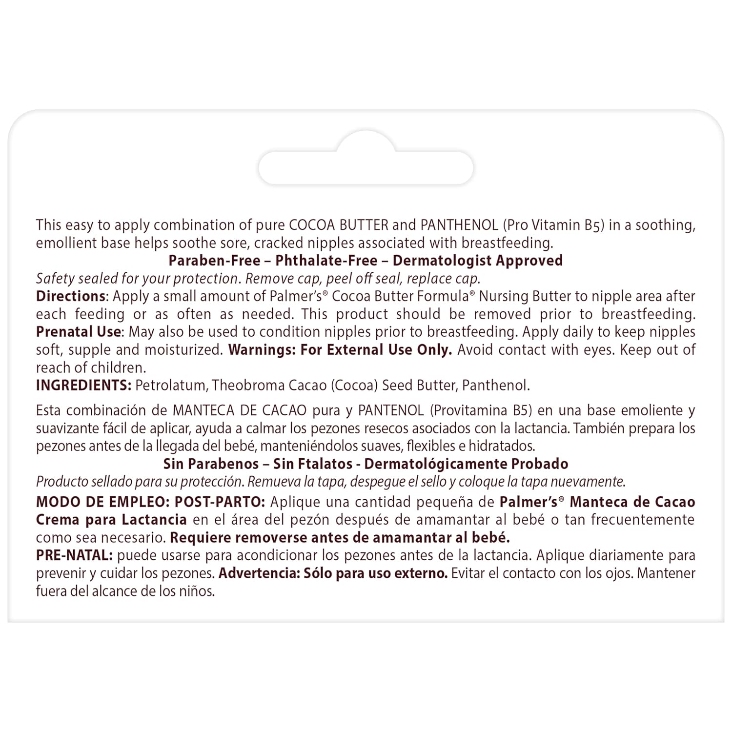 Nursing Butter: This Nursing Cream Helps relieve sore, cracked nipples associated with breastfeeding; It may also be used pre natally to condition nipples for breast feeding; Dermatologically TestedNatural Factors: Palmer's Cocoa Butter Formula Nursing Butter is an easy to apply combination of pure Cocoa Butter and Pro Vitamin B5 in a soothing emollient base; This natural moisturizer leaves skin soft and silkyFinest Ingredients: We strive to use only the finest natural, raw ingredients to bring you soft, hydrated and beautiful hair and skin; We support sustainable production of Shea and Cocoa Butter and Coconut Oil worldwideChoose What's Real: Our beauty products and hair and skin treatments feature real high quality, plant based ingredients in formulas that really work to hydrate and soften, from lip balm to bar soap to body butterPalmer's trusted for over 180 years: Our Cocoa Butter, Coconut Oil, Shea Butter, Olive Oil, and Vitamin E product lines include creams, balms, lotions, oils and soaps for hand and body, face, lip, and hair care, pregnancy and stretch mark careA key post-pregnancy skincare item for any new breastfeeding mom is a nipple cream. The Palmer's Cocoa Butter Formula Nursing Butter, which combines pure Cocoa Butter and (Panthenol) Pro-Vitamin B5 in a soothing emollient base, helps relieve sore, cracked nipples associated with breastfeeding, and provides soothing relief for breastfeeding mothers. Dermatologist tested and free of parabens and phthalates, Nursing Butter is also safe enough to use pre-natally to condition nipples for breast feeding