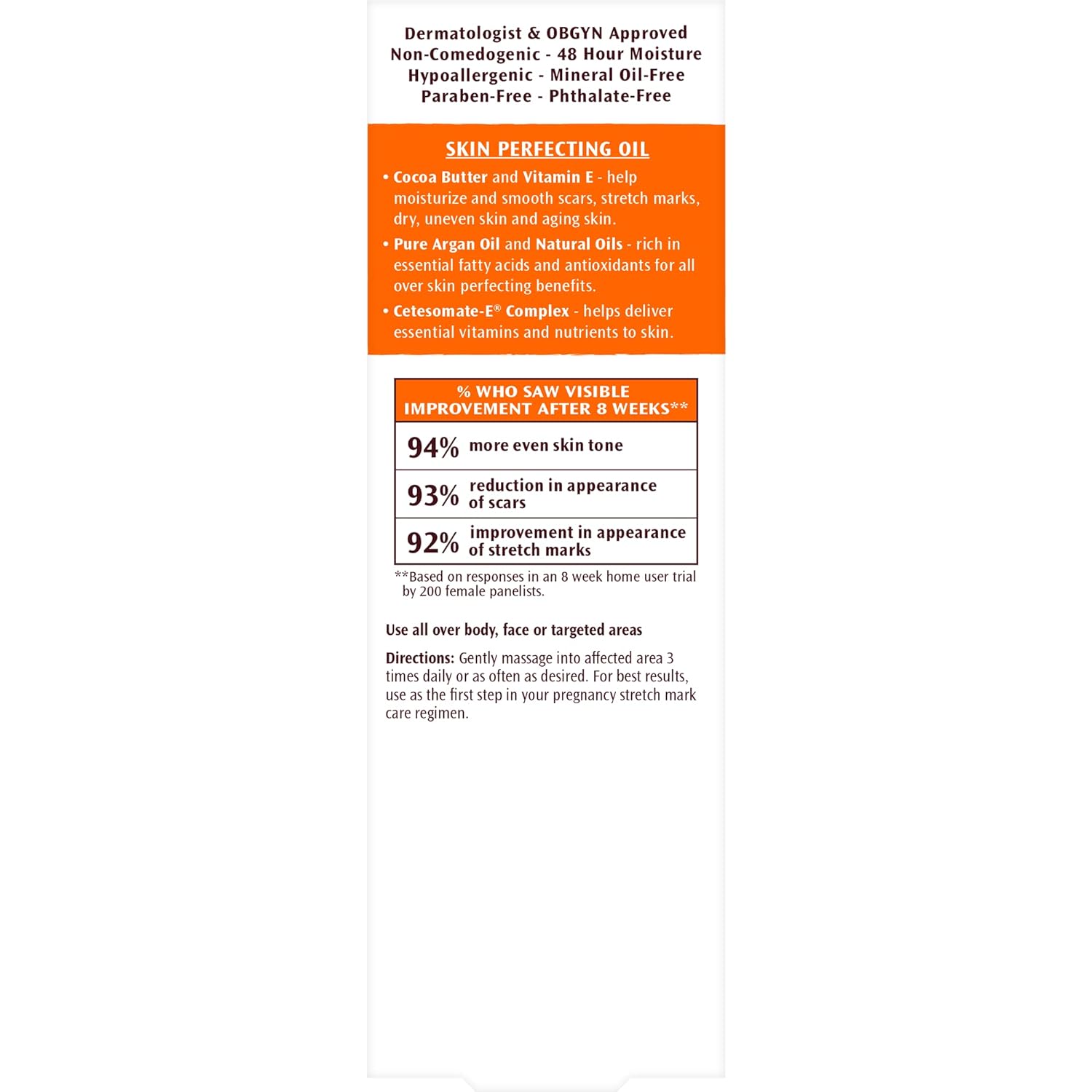 Moisturizing Body Oil: This 48-hour moisturizing body oil helps to improve the appearance of scars, stretch marks, dry & damaged skin, uneven skin tone, aging skin & fine lines & wrinklesSpecial Formula: This formula is made with Cocoa Butter to moisturize, Argan Oil to soften & condition, plus a blend of ingredients to hydrate & improve skin imperfections while promoting healthy skin cell rejuvenationFinest Ingedients: We strive to use only the finest natural, raw ingredients to bring you soft, hydrated & beautiful hair & skin. We support sustainable production of Shea & Cocoa Butter & Coconut Oil worldwideChoose What's Real: Our beauty products and hair and skin treatments feature real high-quality, plant-based ingredients in formulas that really work to hydrate and soften, from lip balm to bar soap to body butterPalmer's: Our Cocoa Butter, Coconut Oil, Shea Butter, Olive Oil, and Vitamin E product lines include creams, balms, lotions, oils and soaps for hand and body, face, lip, and hair care, pregnancy and stretch mark careYouâve heard of using creams and lotions to help your skin stay hydrated or heal dry, damaged skin, but have you considered moisturizing body oils Some of the best body oils for glowing skin have naturally-derived ingredients, including cocoa butter, coconut oil and argan oil. The Palmer's Skin Therapy Oil collection harnesses all of the cocoa butter benefits and blends it with other skin-loving ingredients to hydrate and pamper your skin. Cocoa butter is a natural emollient that works well for moisturizing skin and aiding with scar lightening, while Vitamin E is rich in antioxidants and helps to heal damaged skin. When blended together they help to minimize scars and keep skin hydrated and healthy-looking. Not only is Skin Therapy Oil one of the best oils for dry skin on the body, it also helps improve the appearance of imperfections. A staple in many womenâs skin care routines, this advanced multi-purpose dry oil is rich in essential fatty acids, vitamins and antioxidants to perfect skin all-over-the body by improving the appearance of stretch marks, scars and dry, damaged or uneven skin. Try the Palmer's Skin Therapy Body Oil in the original or rosehip fragrance for hydrated, glowing and perfected skin