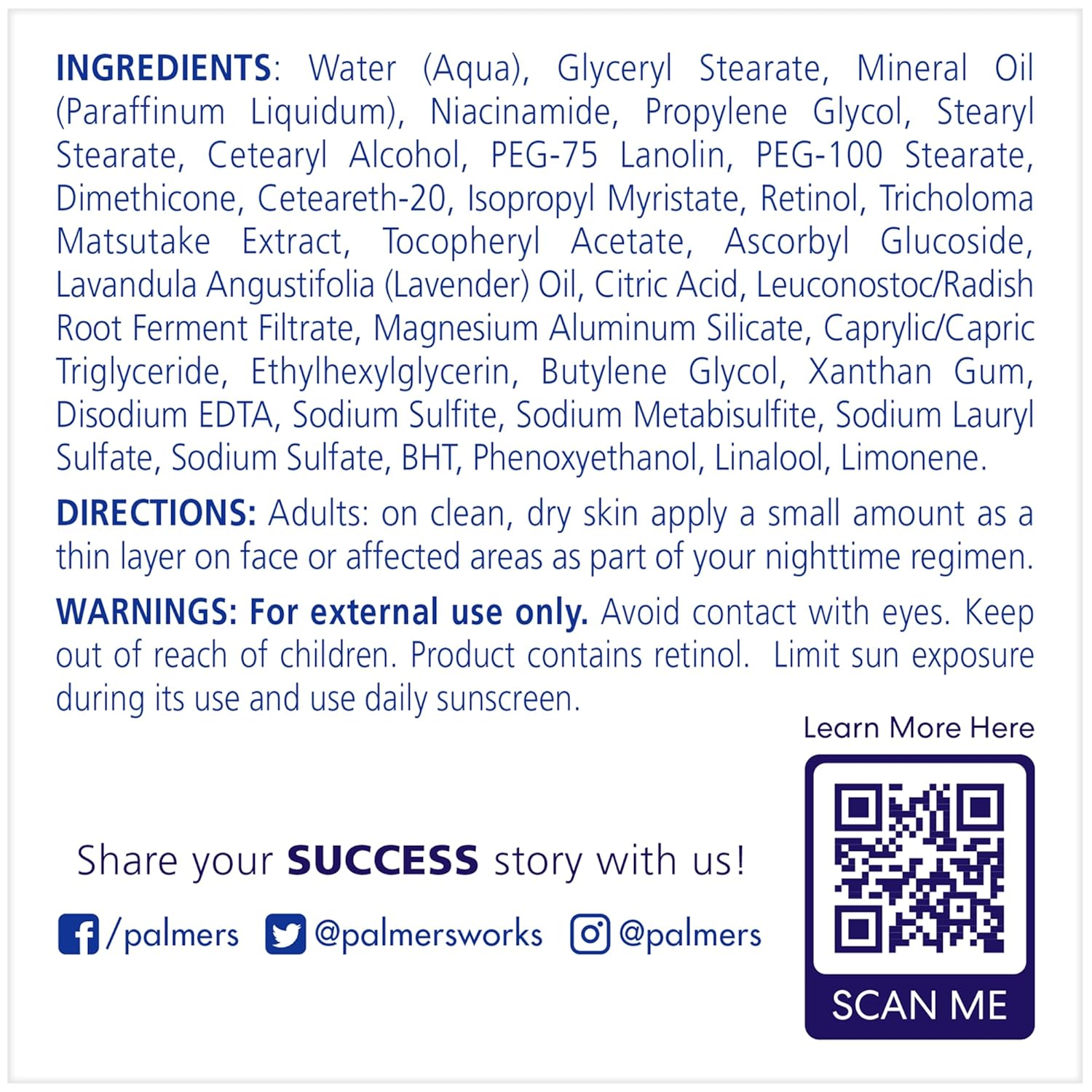 About this item Night Cream: This face cream targets dark spots, age spots, uneven skin tone and discoloration; It also helps with improving suppleness and elasticity and minimizing the appearance of fine lines and wrinkles Brighter, More Radiant Skin: Formulated for all skin types, this night time fade cream gives you a flawlessly radiant complexion by effectively correcting discoloration; No Hydroquinone, Parabens, Phthalates, Sulfates, MI or Dyes Finest Ingredients: We strive to use only the finest natural, raw ingredients to bring you soft, beautiful hair and skin; We support sustainable production of Shea and Cocoa Butter and Coconut Oil worldwide Choose What's Real: Our beauty products and hair and skin treatments feature real, plant based ingredients in formulas that really work to hydrate and soften, from lip balm to bar soap to body butter Why Palmers For over 180 years, Palmer's has crafted treatment-oriented beauty products using Cocoa Butter, Coconut Oil, Shea Butter, Olive Oil & Vitamin E to soothe, hydrate, soften, replenish and revitalize skin and hair See more product details,Night Cream: This face cream targets dark spots, age spots, uneven skin tone and discoloration; It also helps with improving suppleness and elasticity and minimizing the appearance of fine lines and wrinkles,Brighter, More Radiant Skin: Formulated for all skin types, this night time fade cream gives you a flawlessly radiant complexion by effectively correcting discoloration; No Hydroquinone, Parabens, Phthalates, Sulfates, MI or Dyes,Finest Ingredients: We strive to use only the finest natural, raw ingredients to bring you soft, beautiful hair and skin; We support sustainable production of Shea and Cocoa Butter and Coconut Oil worldwide,Choose What's Real: Our beauty products and hair and skin treatments feature real, plant based ingredients in formulas that really work to hydrate and soften, from lip balm to bar soap to body butter,Why Palmers For over 180 years, Palmer's has crafted treatment-oriented beauty products using Cocoa Butter, Coconut Oil, Shea Butter, Olive Oil & Vitamin E to soothe, hydrate, soften, replenish and revitalize skin and hair