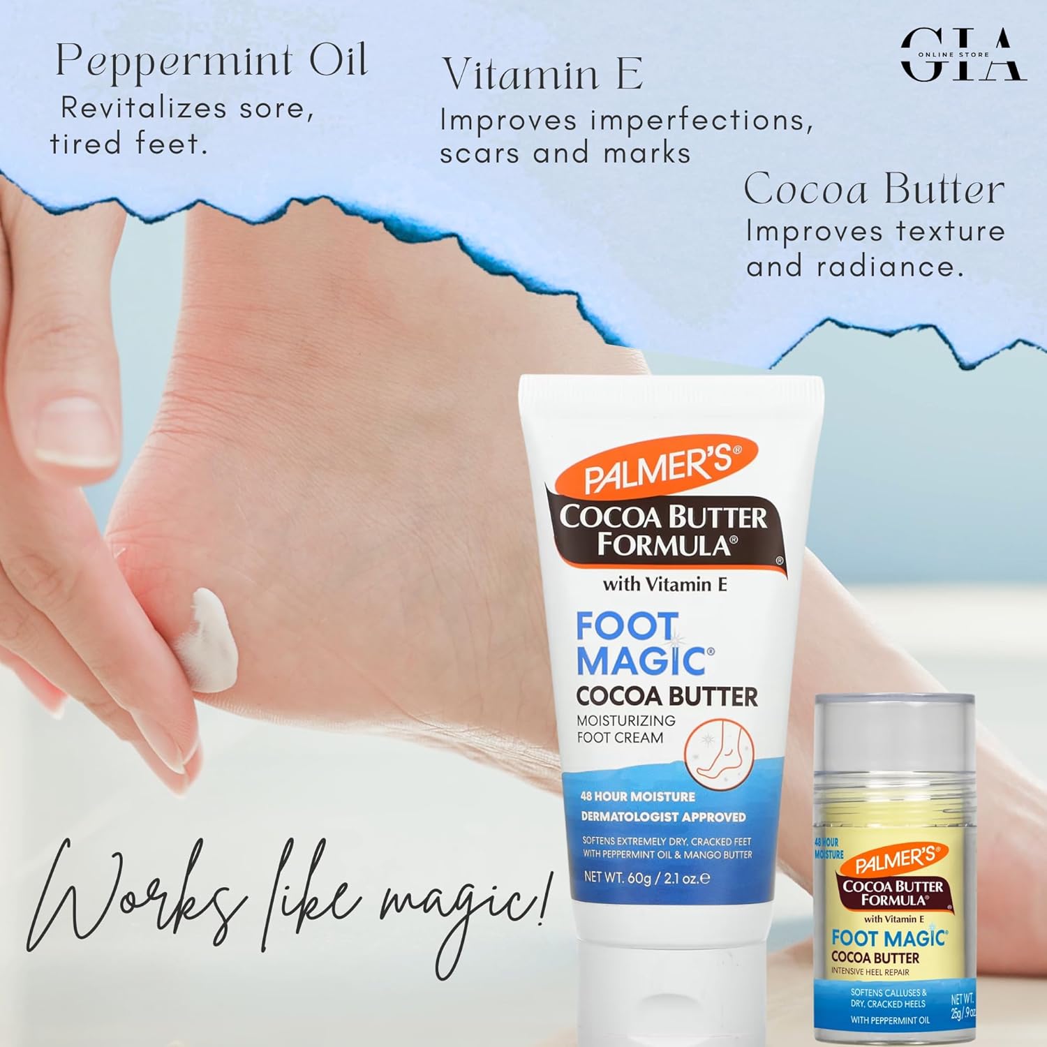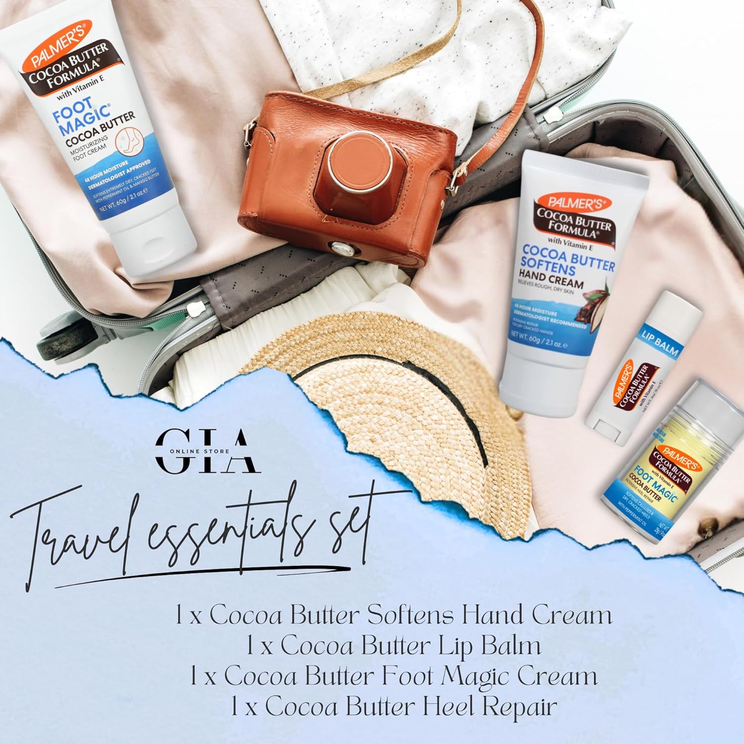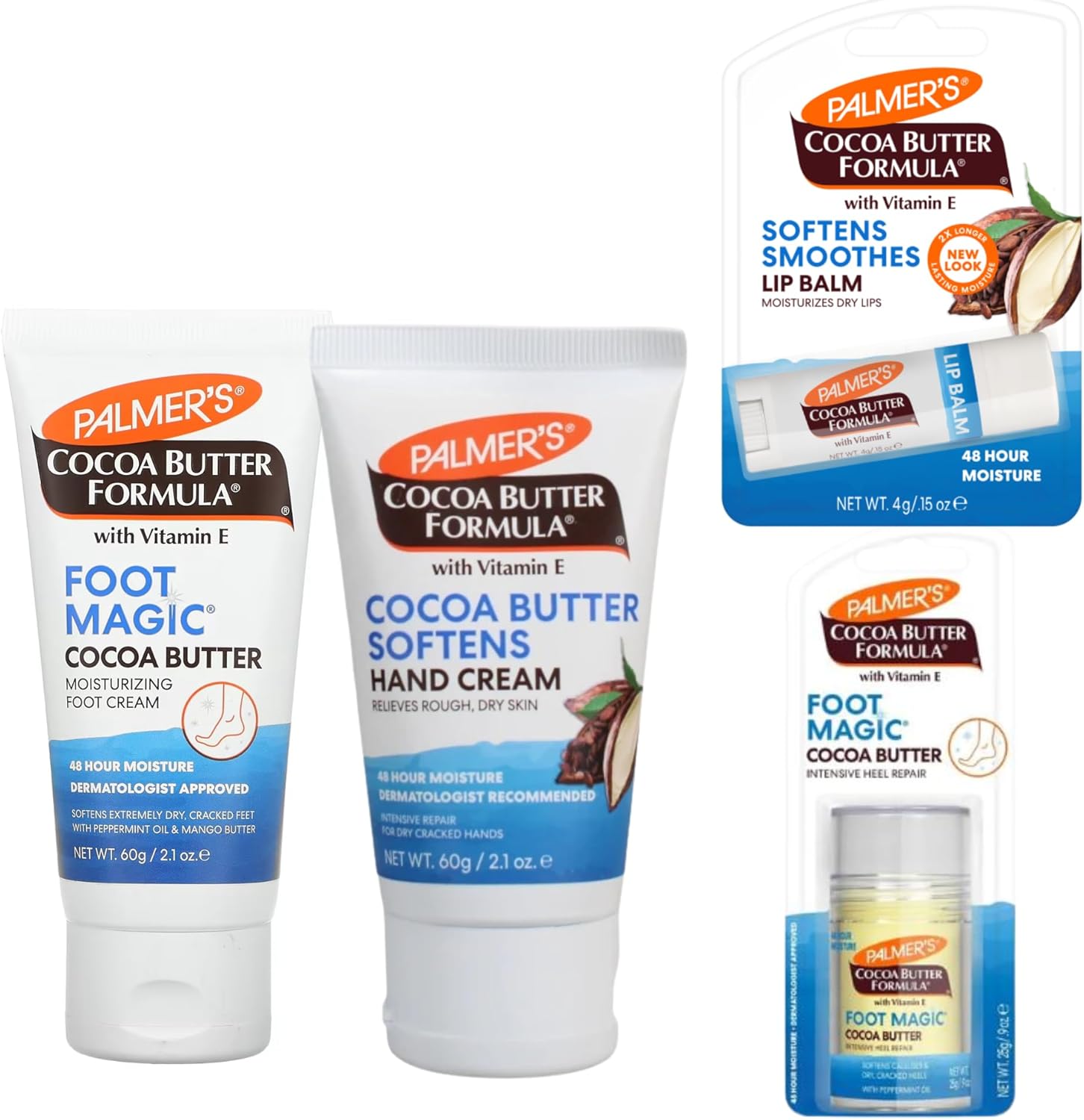 Palmer'S Travel Set: Palmers Cocoa Butter Foot Magic Cream 60G, Lip Balm 4G, Heel Repair Stick 25G, Hand Cream 60G - Perfect Moisturizer Bundle Ideal For Dry Skin, Cracked Heels & Lips