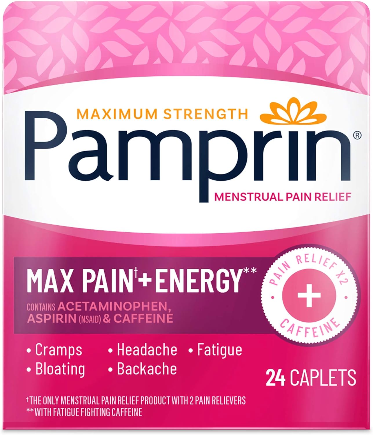 Maximum Strength Menstrual Pain Relief: With Pain Relieving Aspirin And Acetaminophen, Pamprin Max Pain + Energy Is Formulated To Provide Complete Relief Of Menstrual Cramps, Headaches, Backaches, And Fatigue