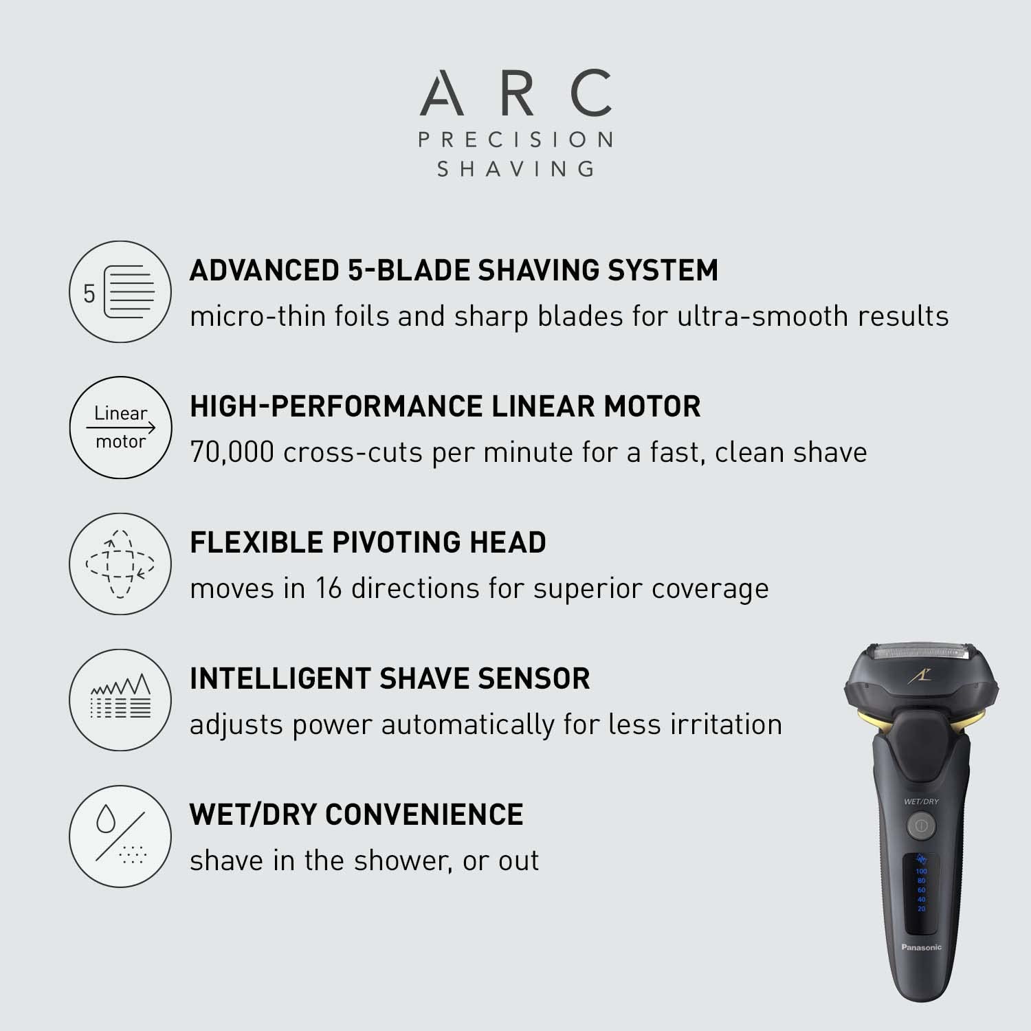 Panasonic ARC5 Electric Razor for Men with Pop-up Trimmer, Wet Dry 5-Blade Electric Shaver with Intelligent Shave Sensor and 16D Flexible Pivoting Head - ES-LV67-K (Black)